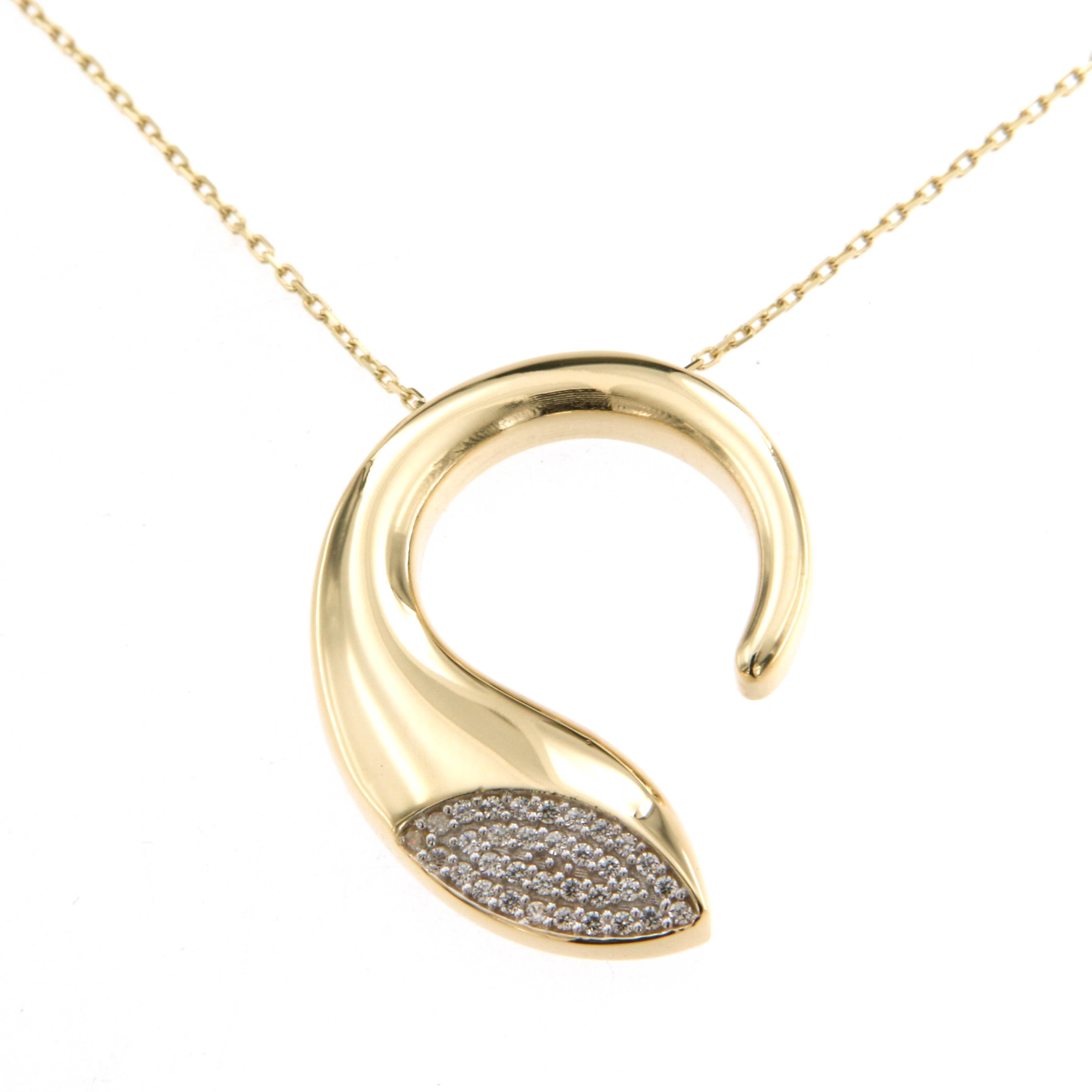 Колие от “Jacklin hugasian” в жълто злато гланц с циркони. Дължина 50.0 см, широчина на висулката 2.0 см