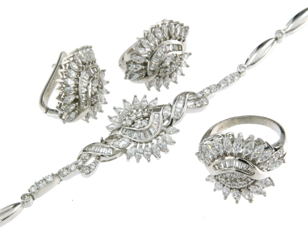 Комплект гривна и пръстен от" Jacklin hugasian " в сребро с цирконий.