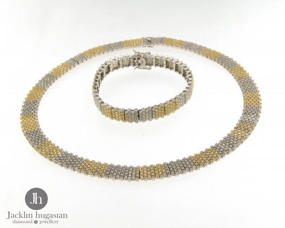 Комплект колие и гривна от "Jacklin hugasian" в сребро с цирконии и позлата.