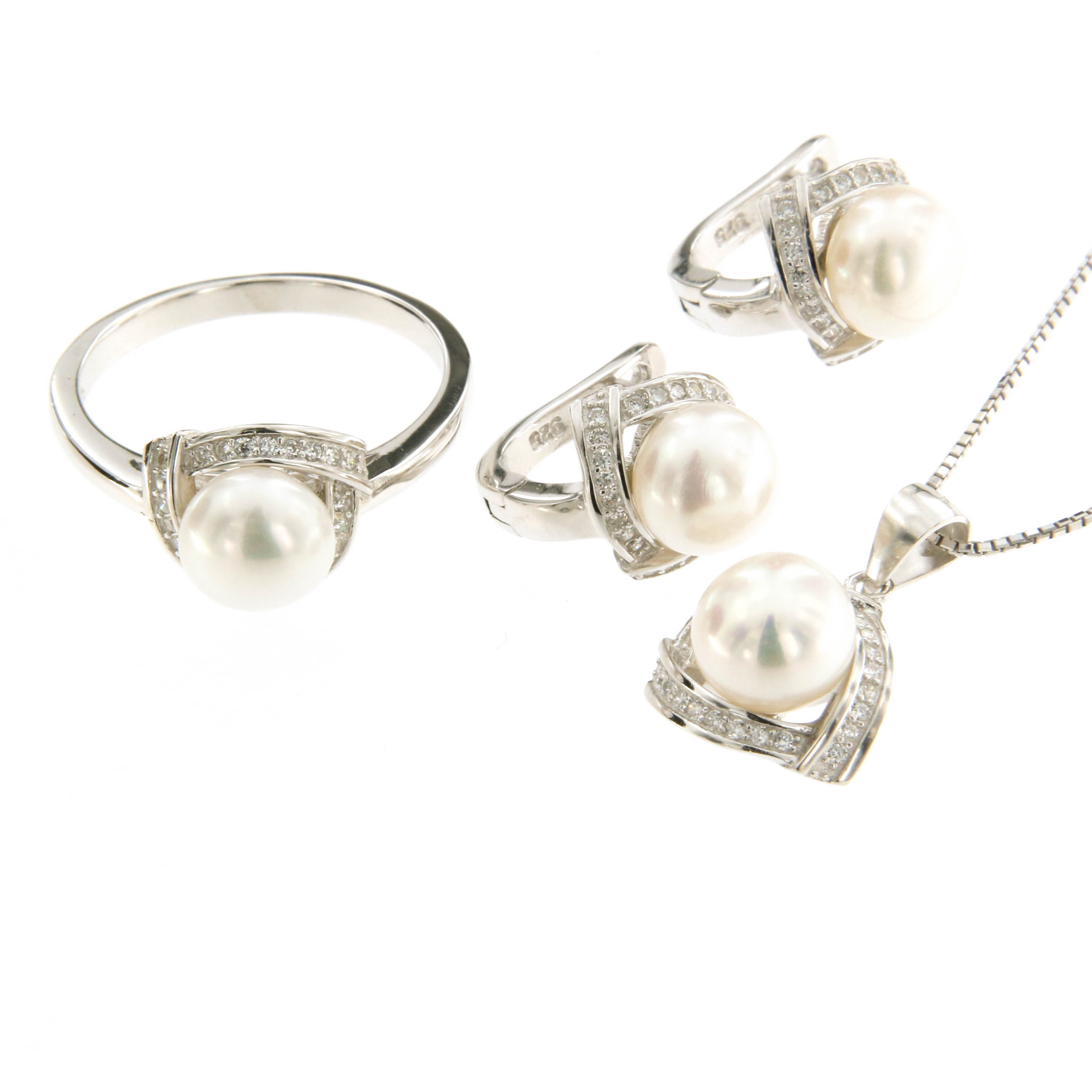 Пръстен от "Jacklin hugasian" в сребро с перли и цирконий.