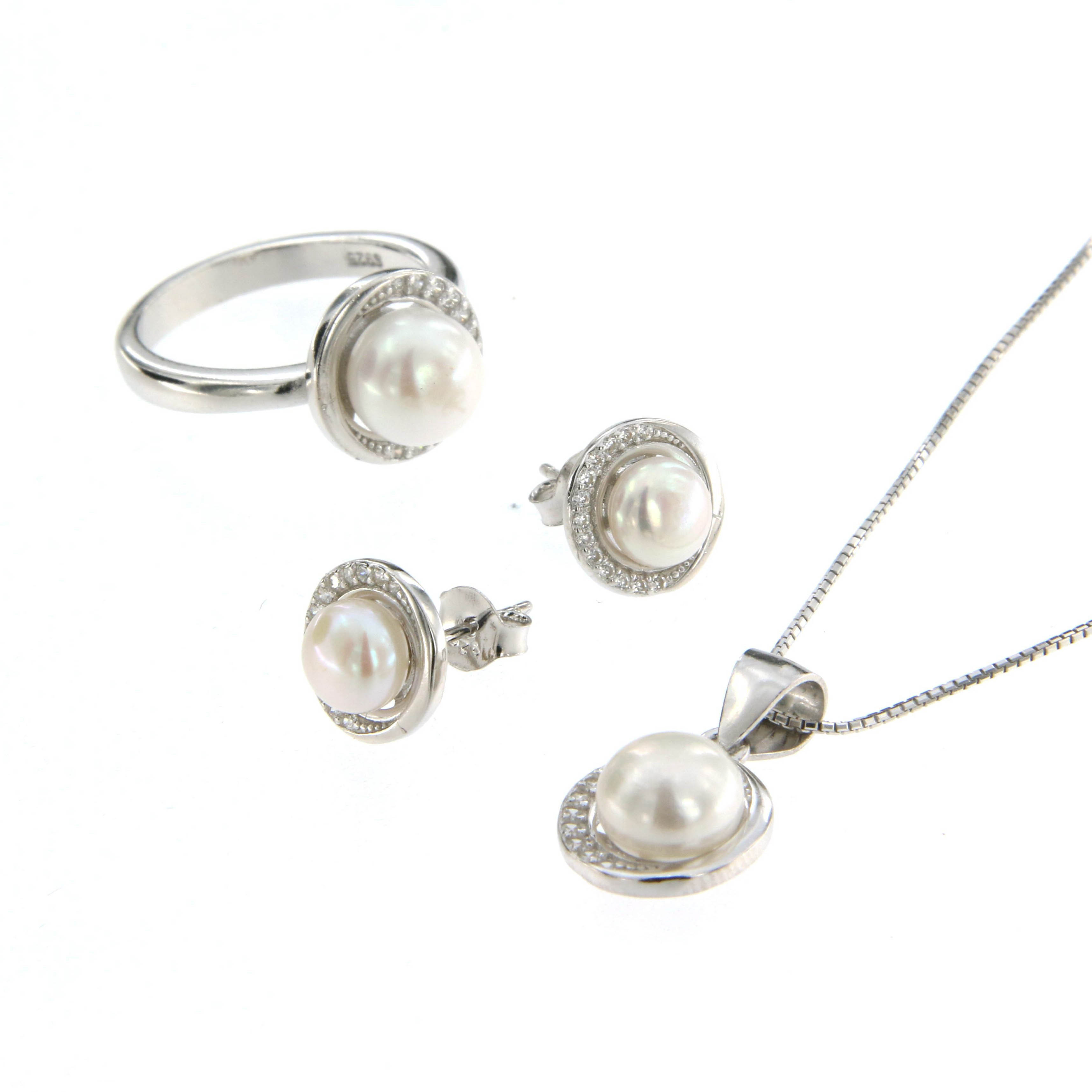 Пръстен от "Jacklin hugasian" в сребро с перли и цирконии.