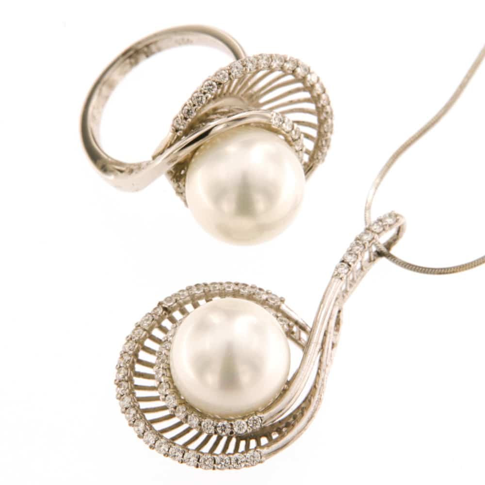 Комплект пръстен и висулка от "Jacklin hugasian" с цирконии и култивирана бяла перла.