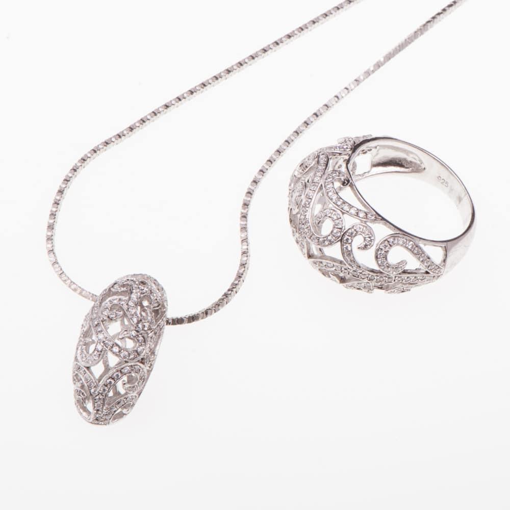 Комплект пръстен и висулка от " Jacklin hugasian " в сребро с цирконии.