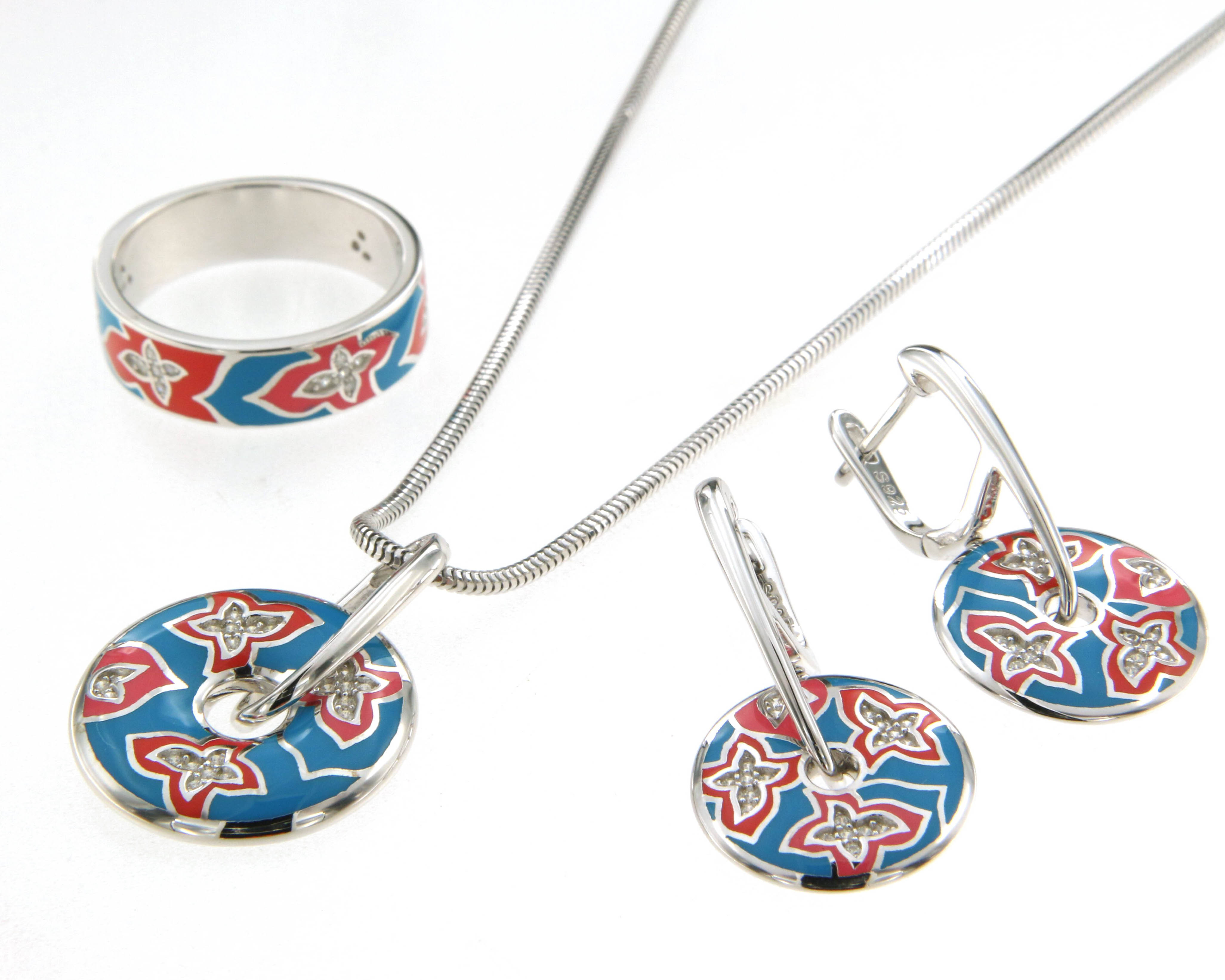 Колие от “Jacklin hugasian” в сребро с разноцветен емайл.