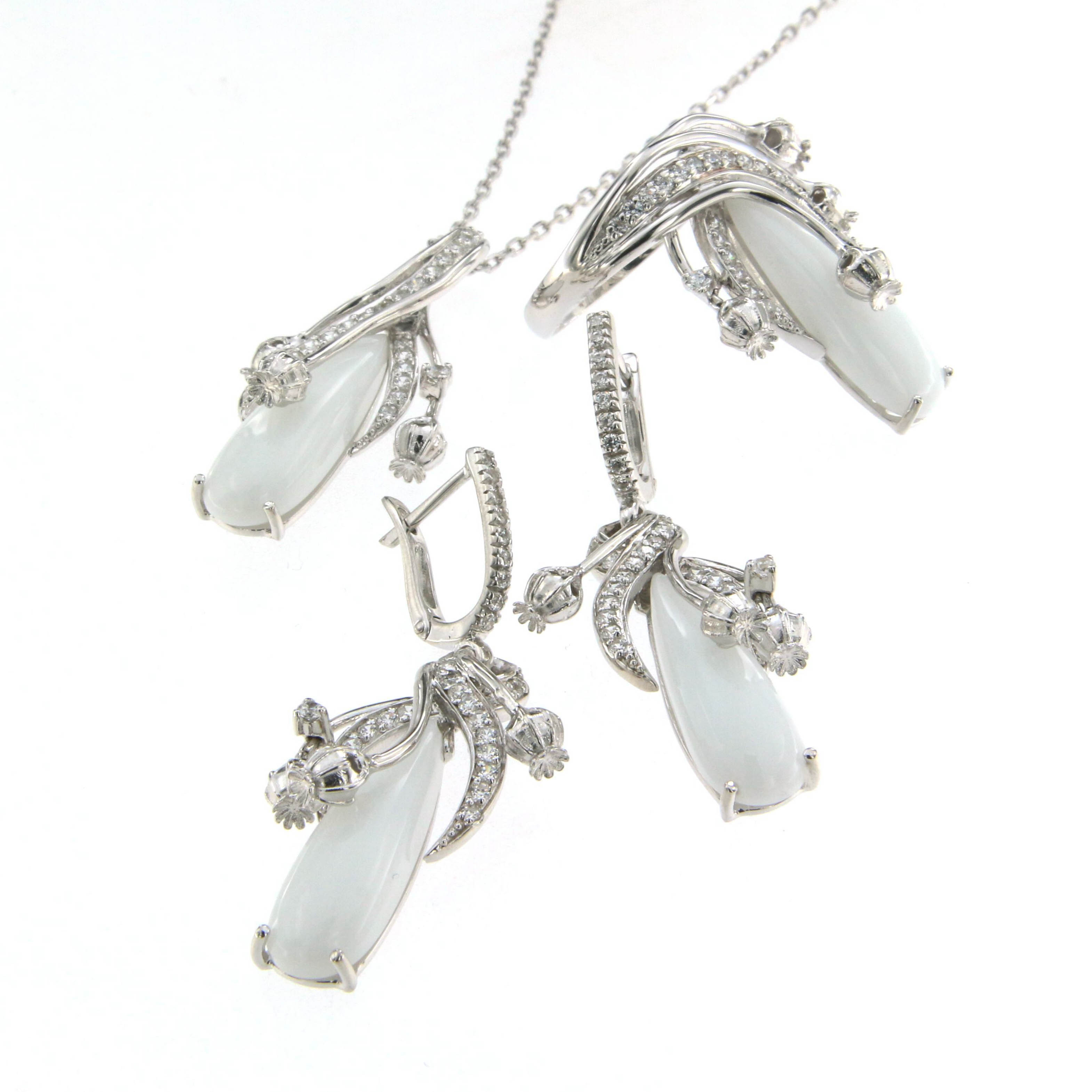 Комплект пръстен и колие от "Jacklin hugasian" в сребро с бял ахат и циркони.