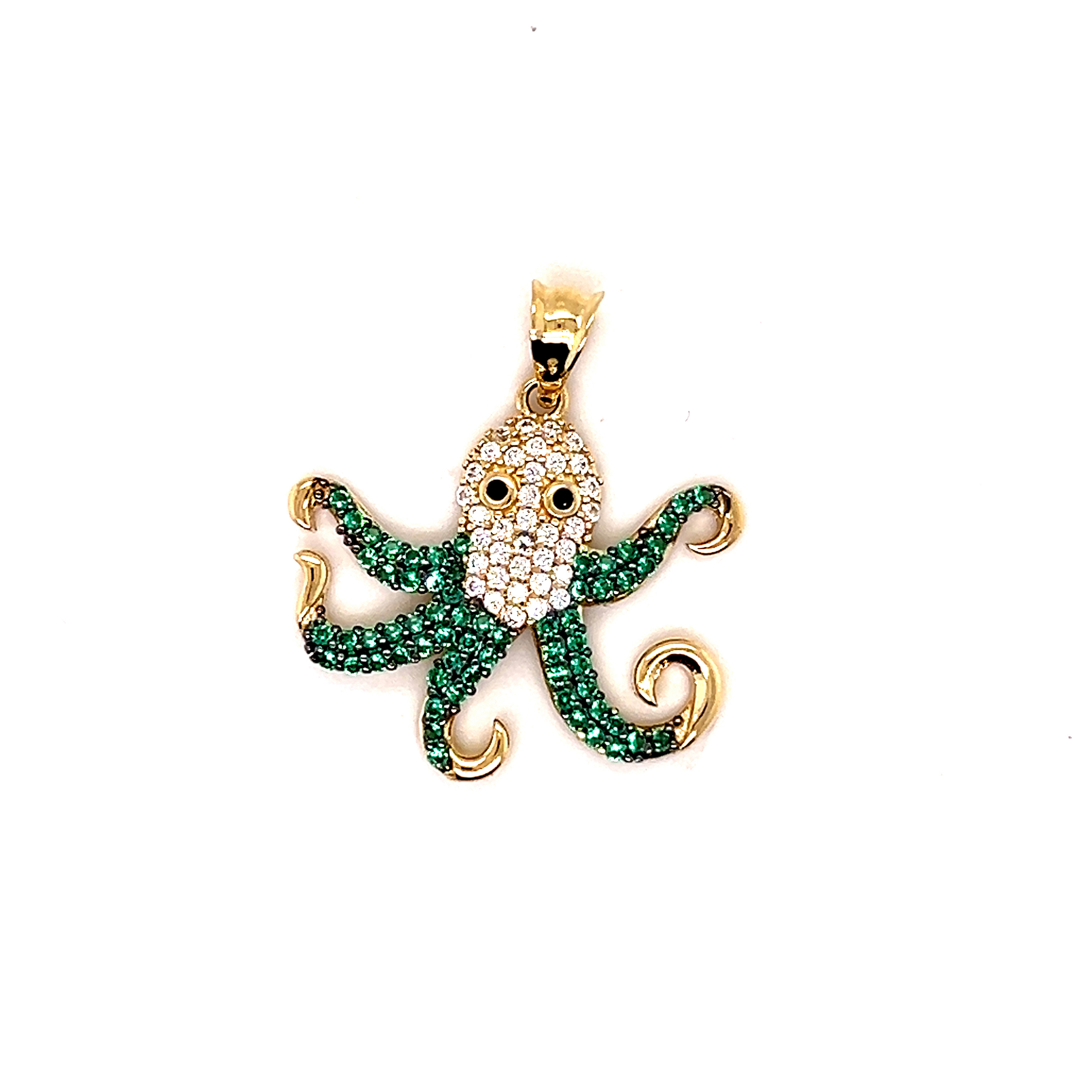 Висулка от “Jacklin hugasian” в жълто златo с циркон и изумруд