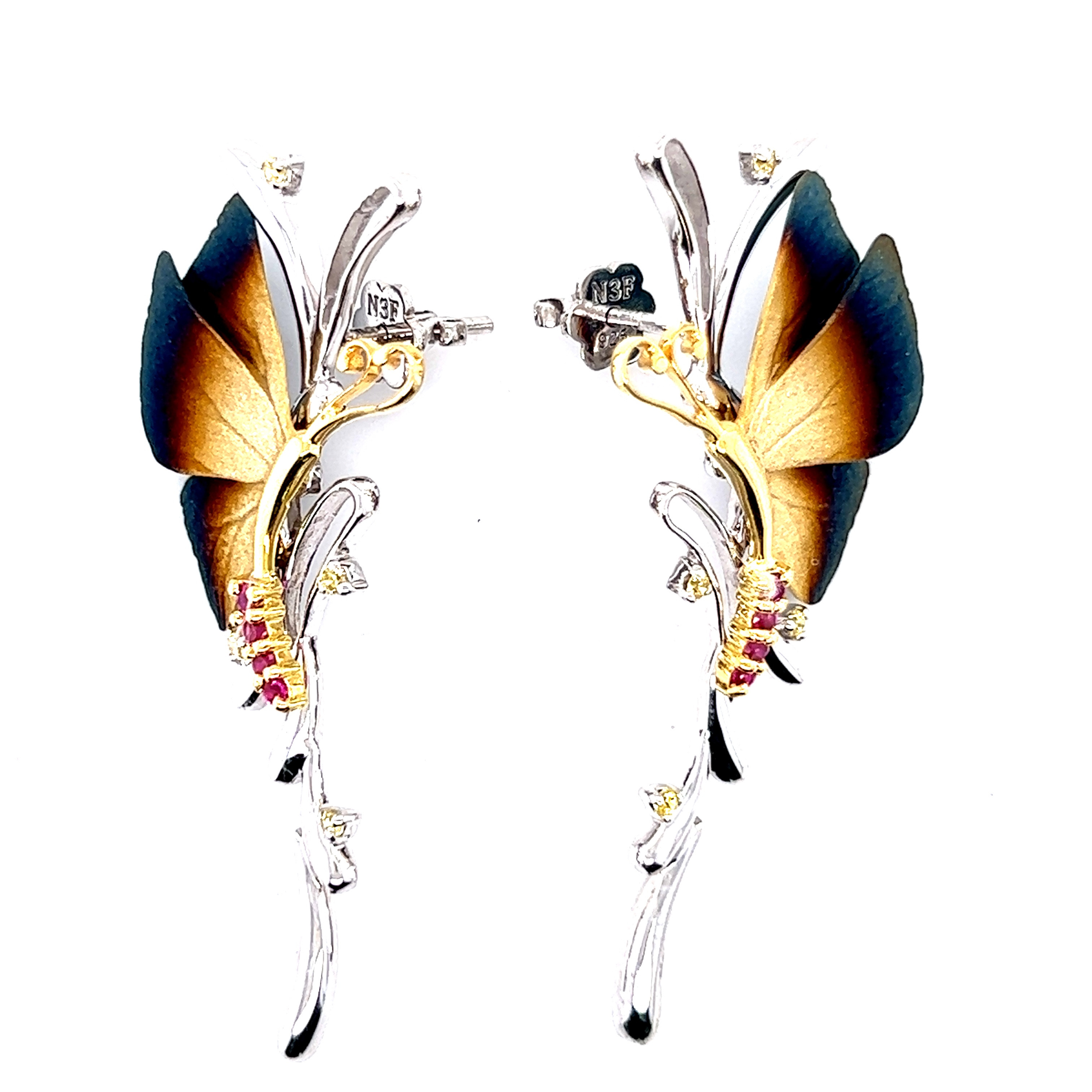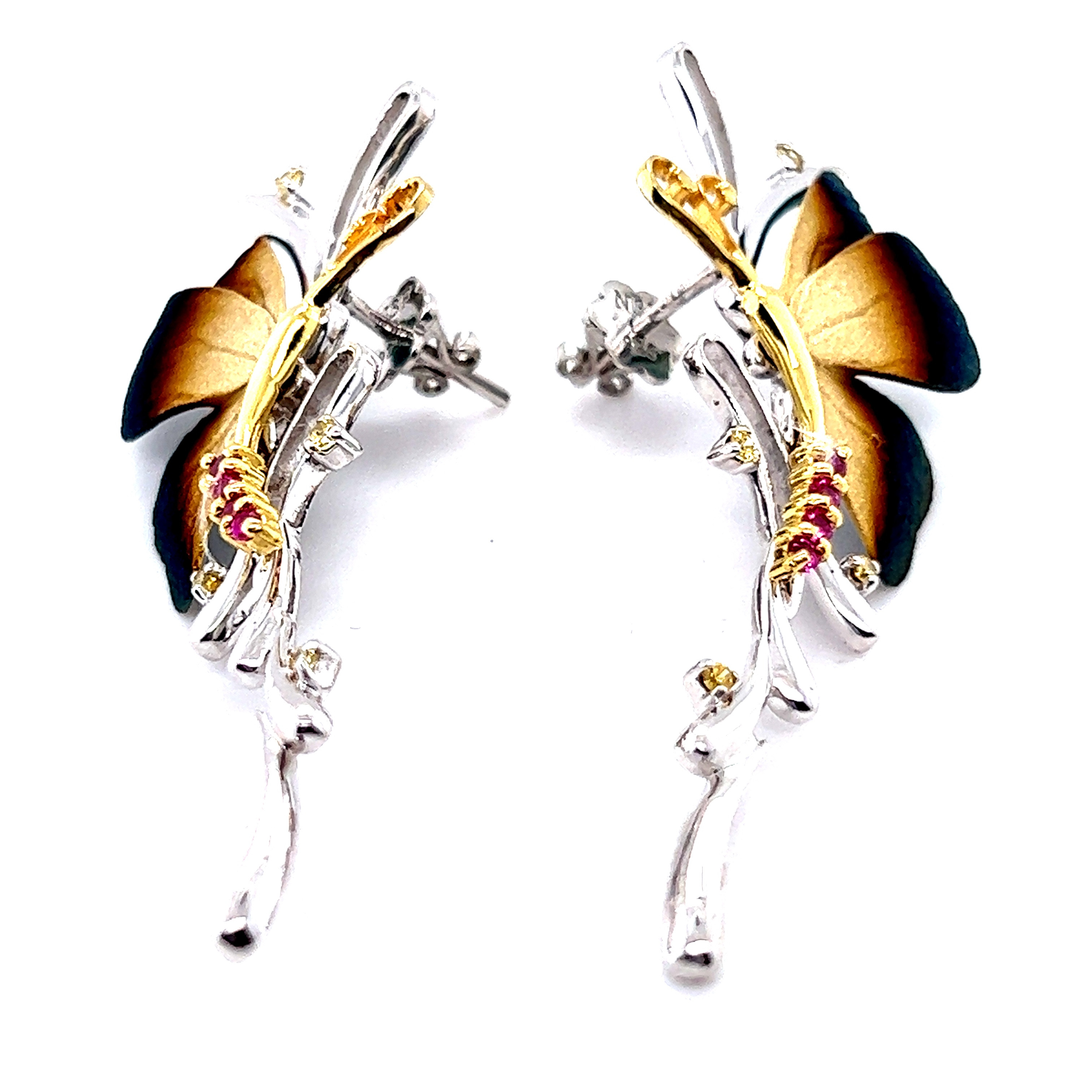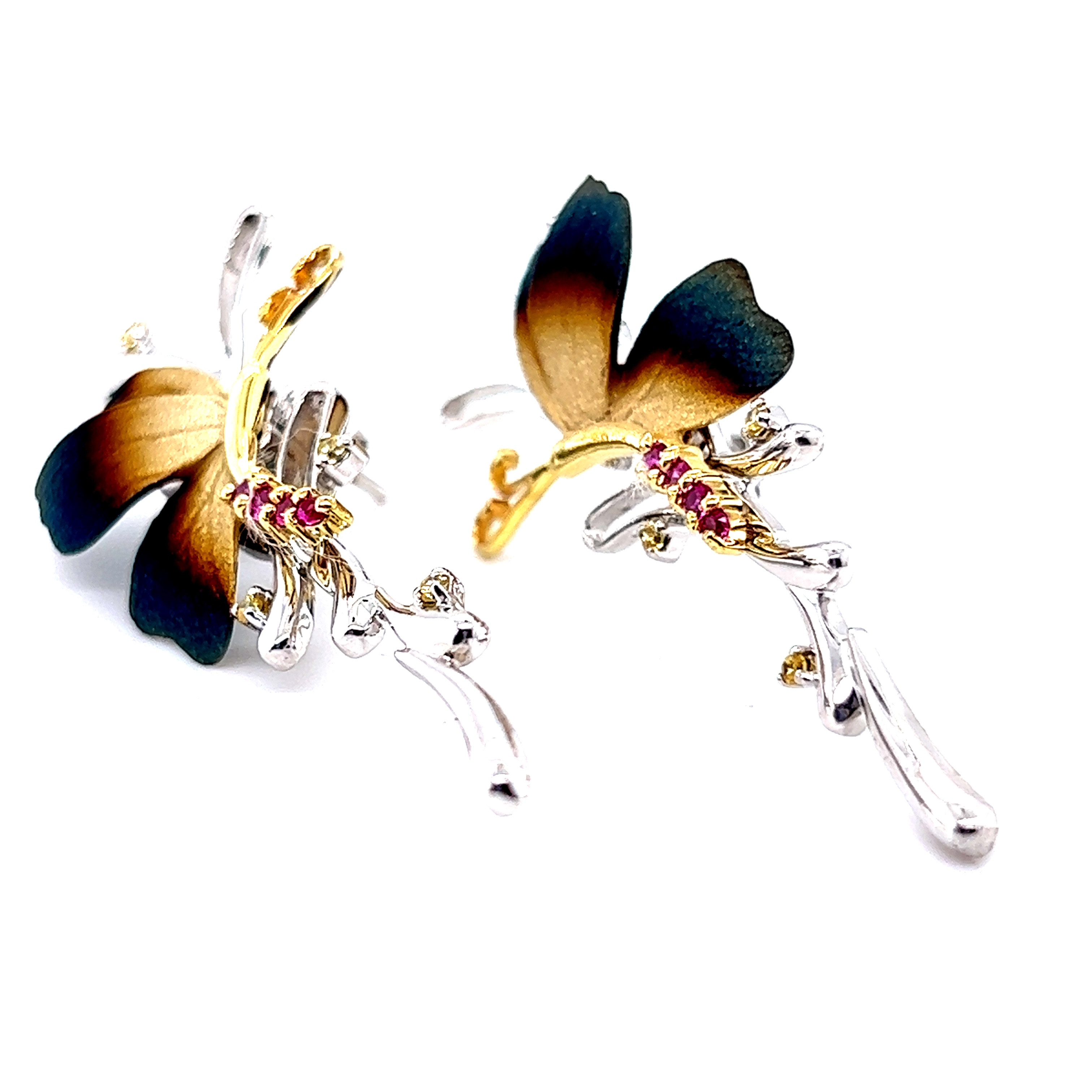 Обеци от “Jacklin hugasian” в сребро с разноцветен емайл и рубини.