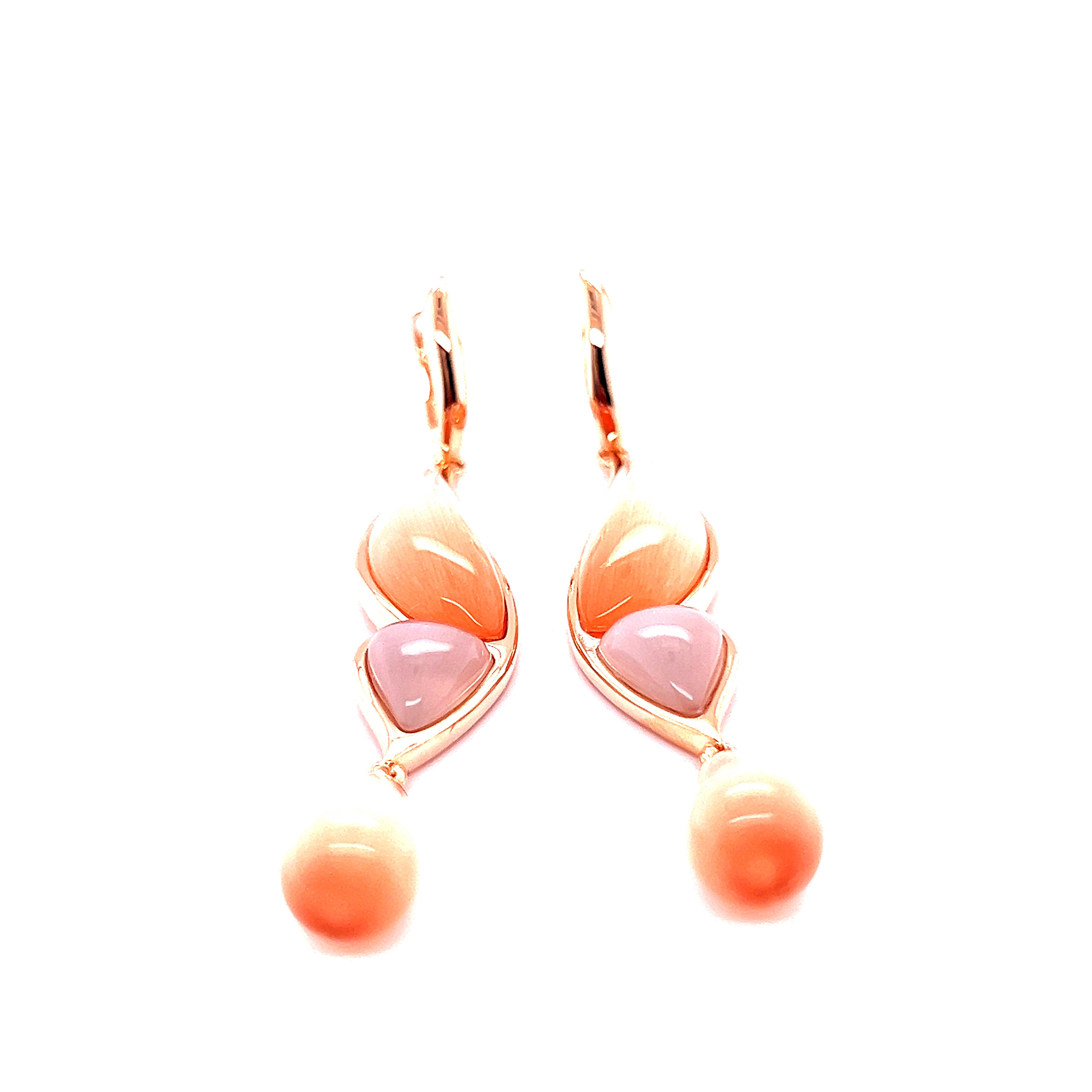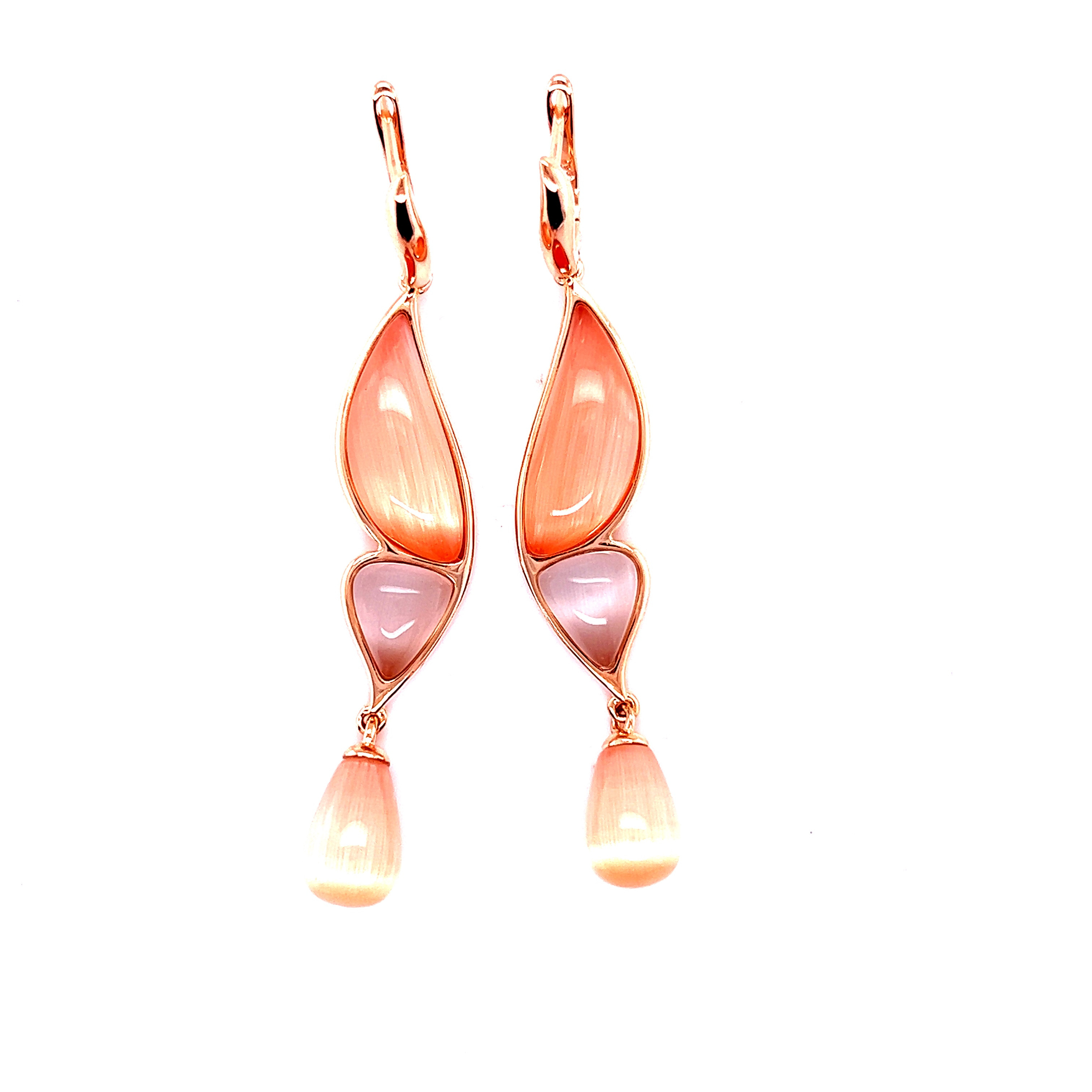 Обеци от "Jacklin hugasian" в розово сребро и камък "Котешко око"