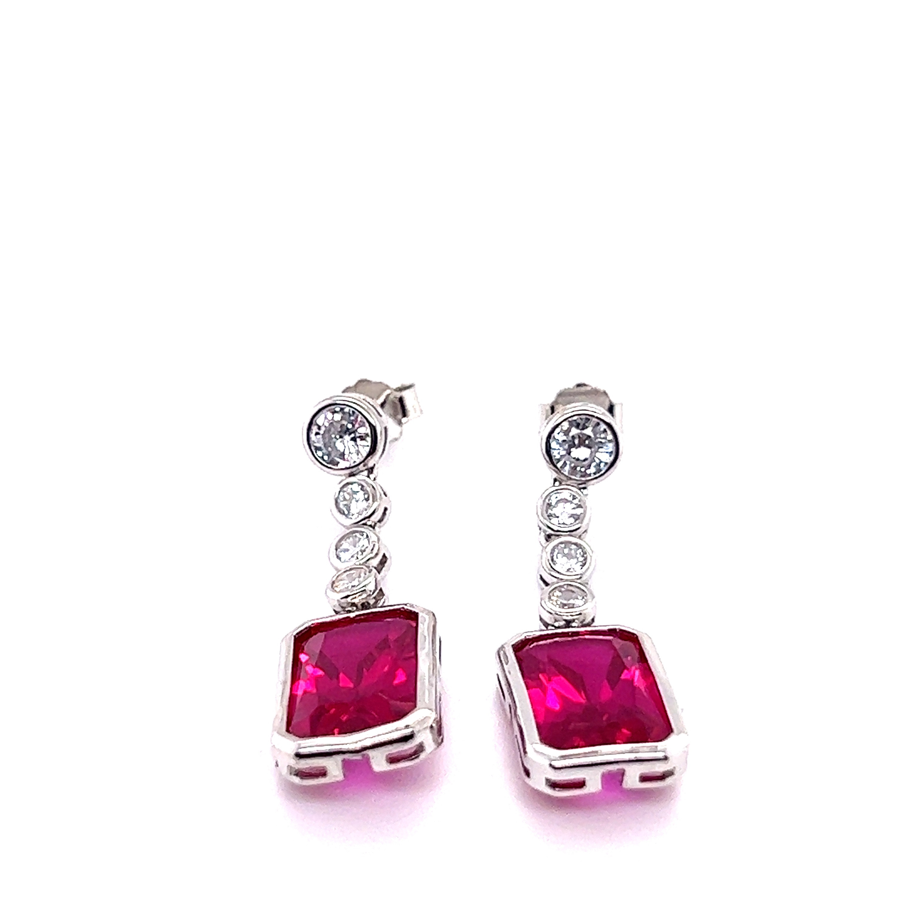 Обеци от "Jacklin hugasian" в сребро с циркони и рубин