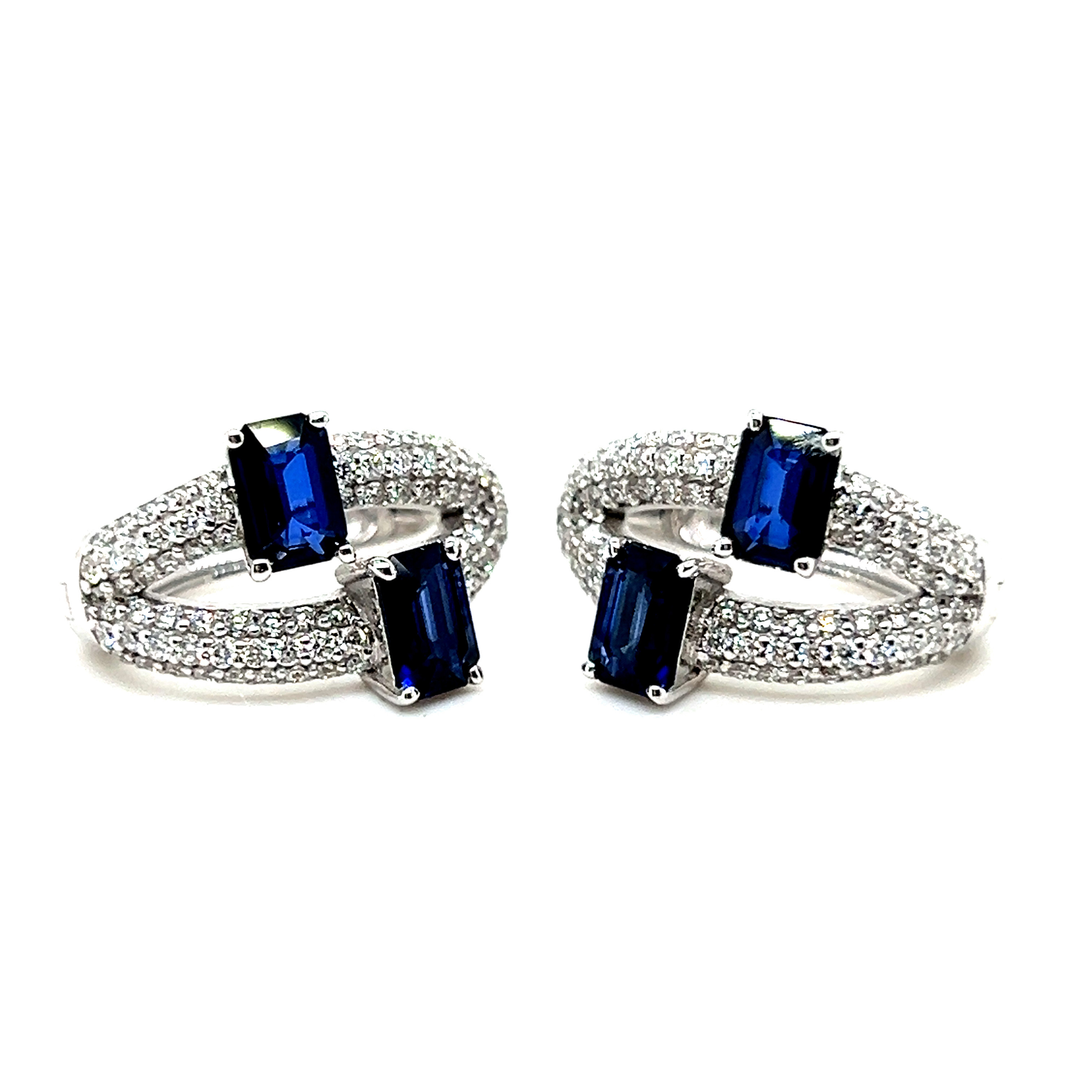 Oбеци от "Jacklin hugasian" в бяло злато с диаманти и сапфир.