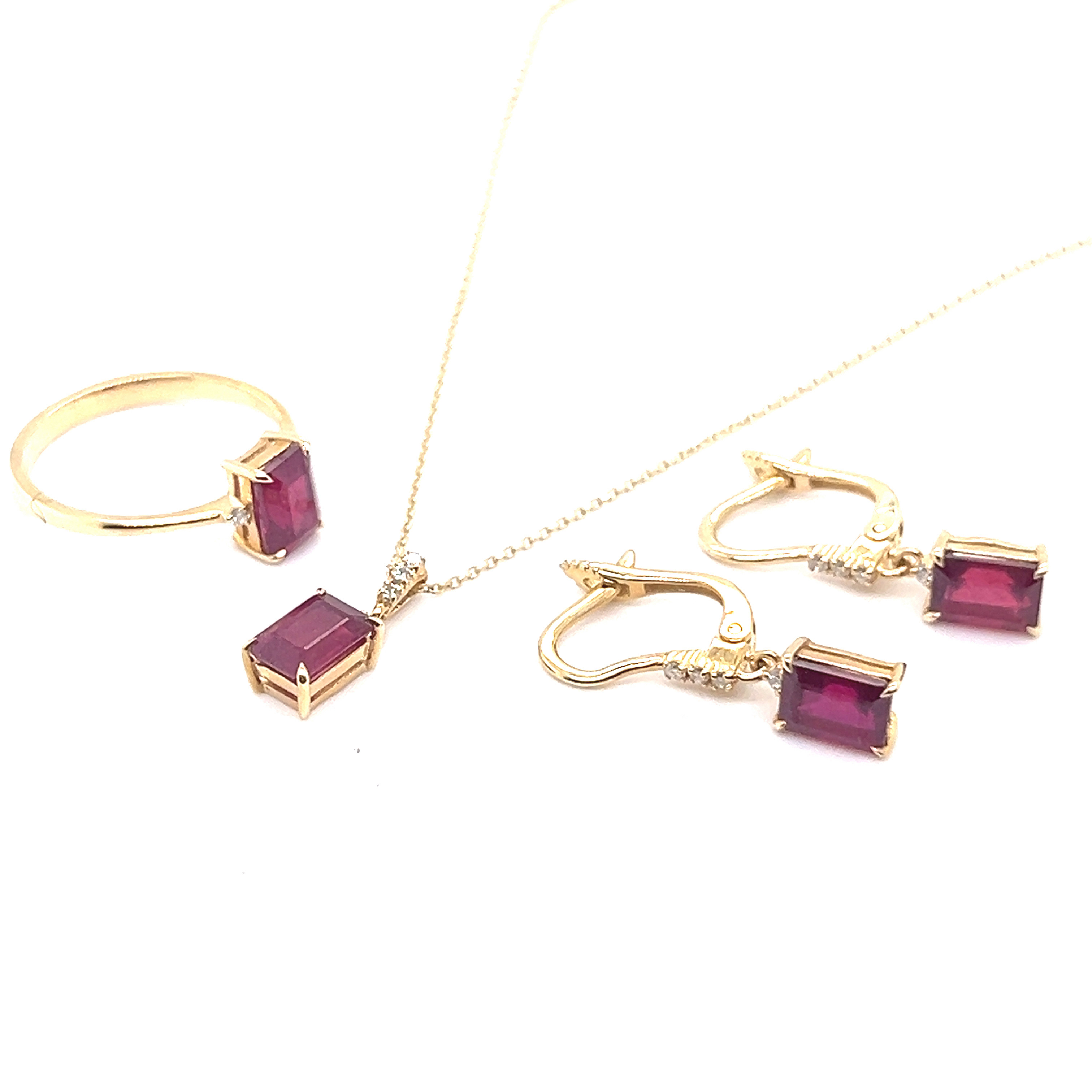 Комплект от "Jacklin hugasian" в жълто злато с рубин и диаманти.