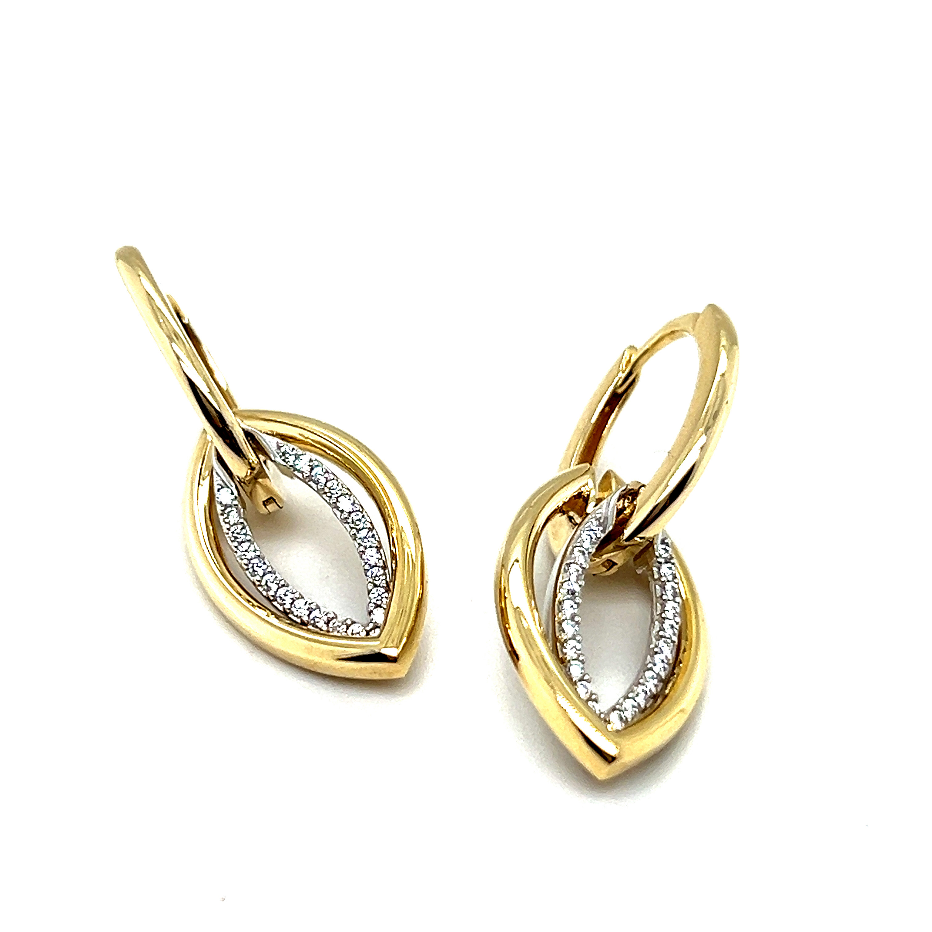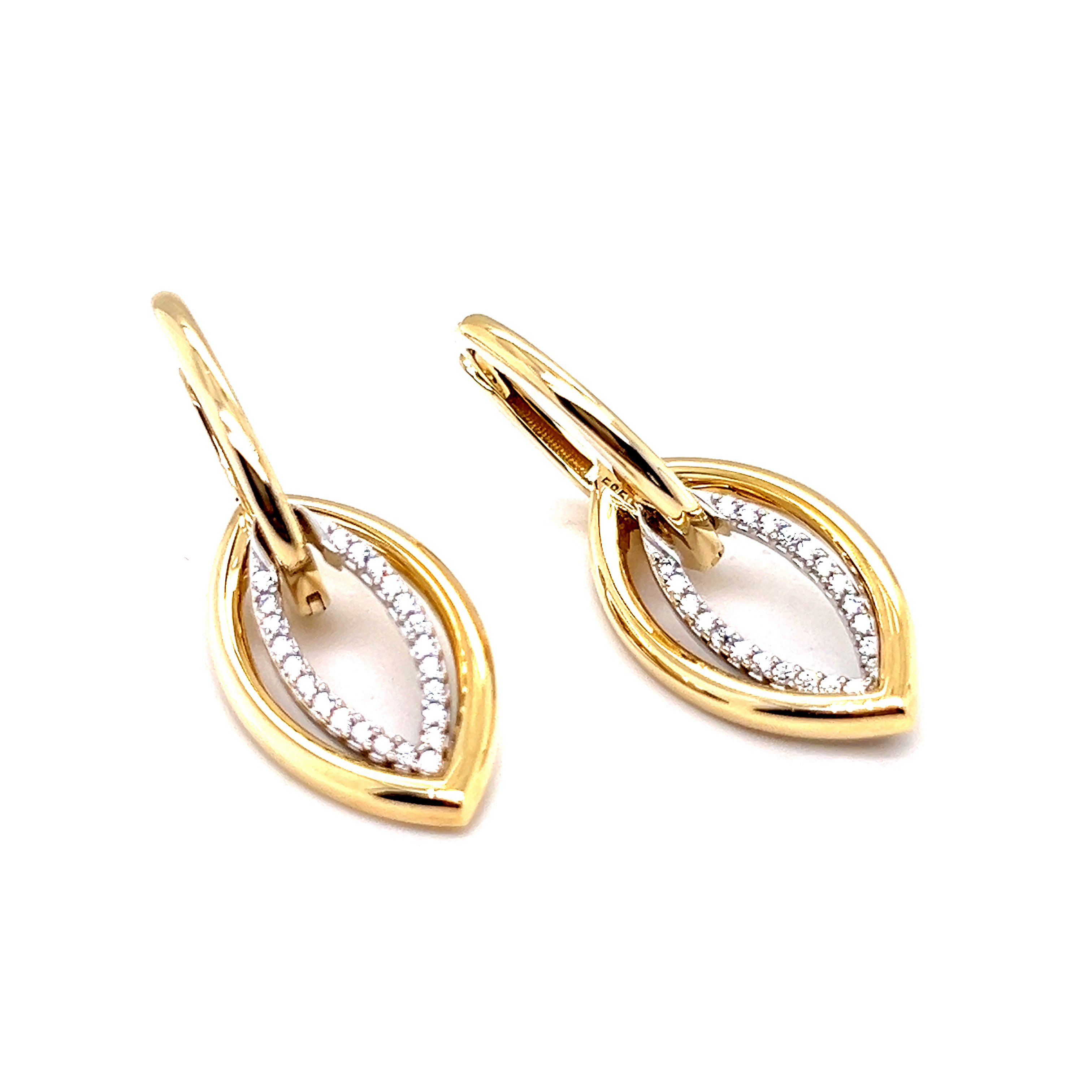 Обеци от “Jacklin hugasian” в жълто злато гланц ,с циркони.