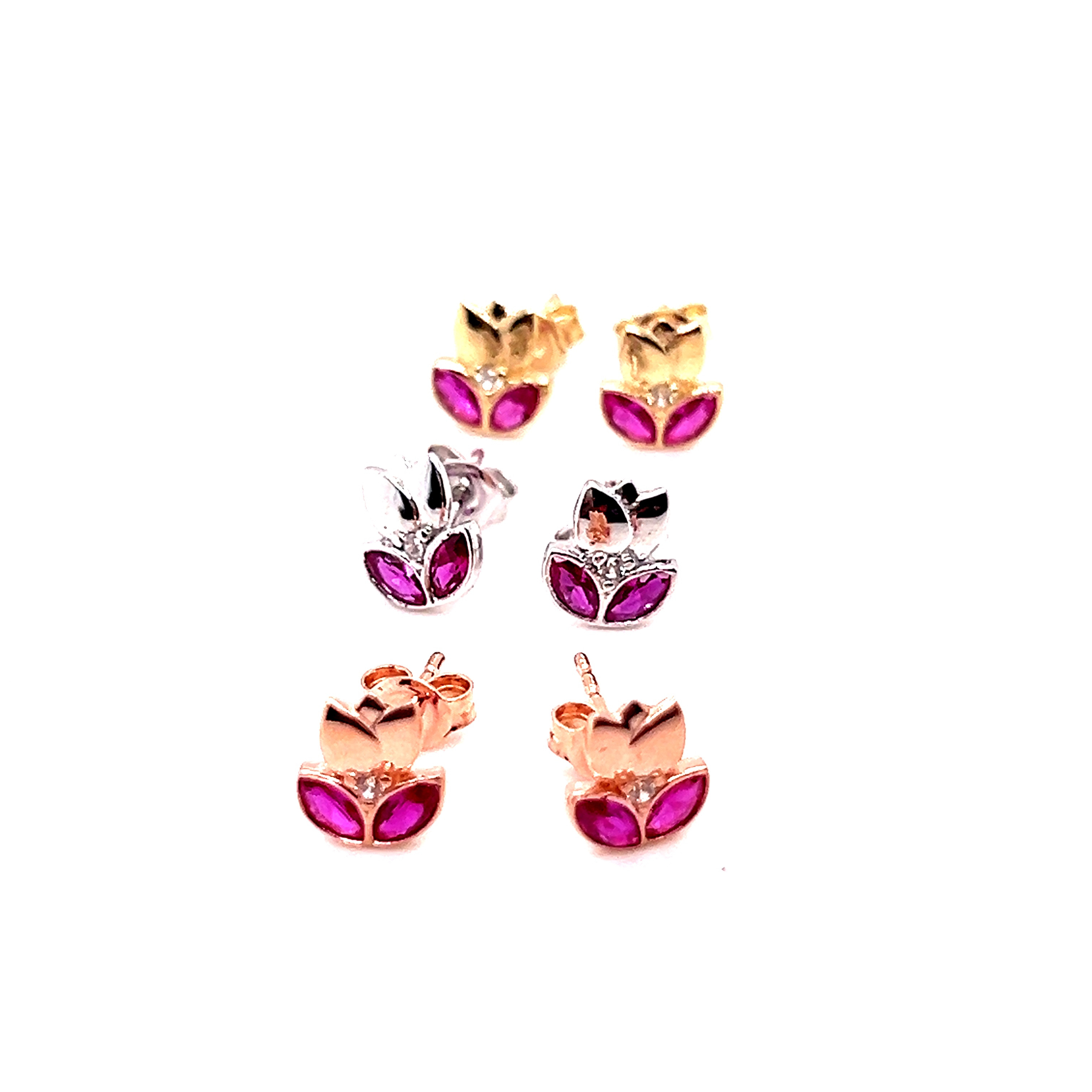 Обеци от “Jacklin hugasian” в жълто,в бяло и в розово златo със синтетичен рубин