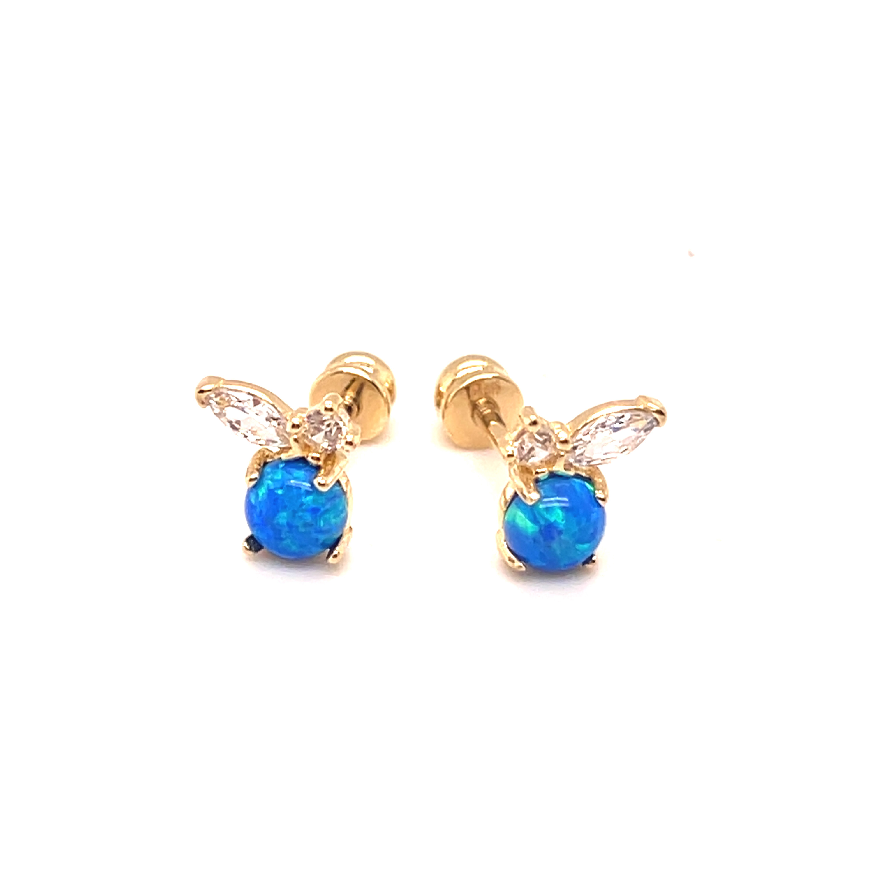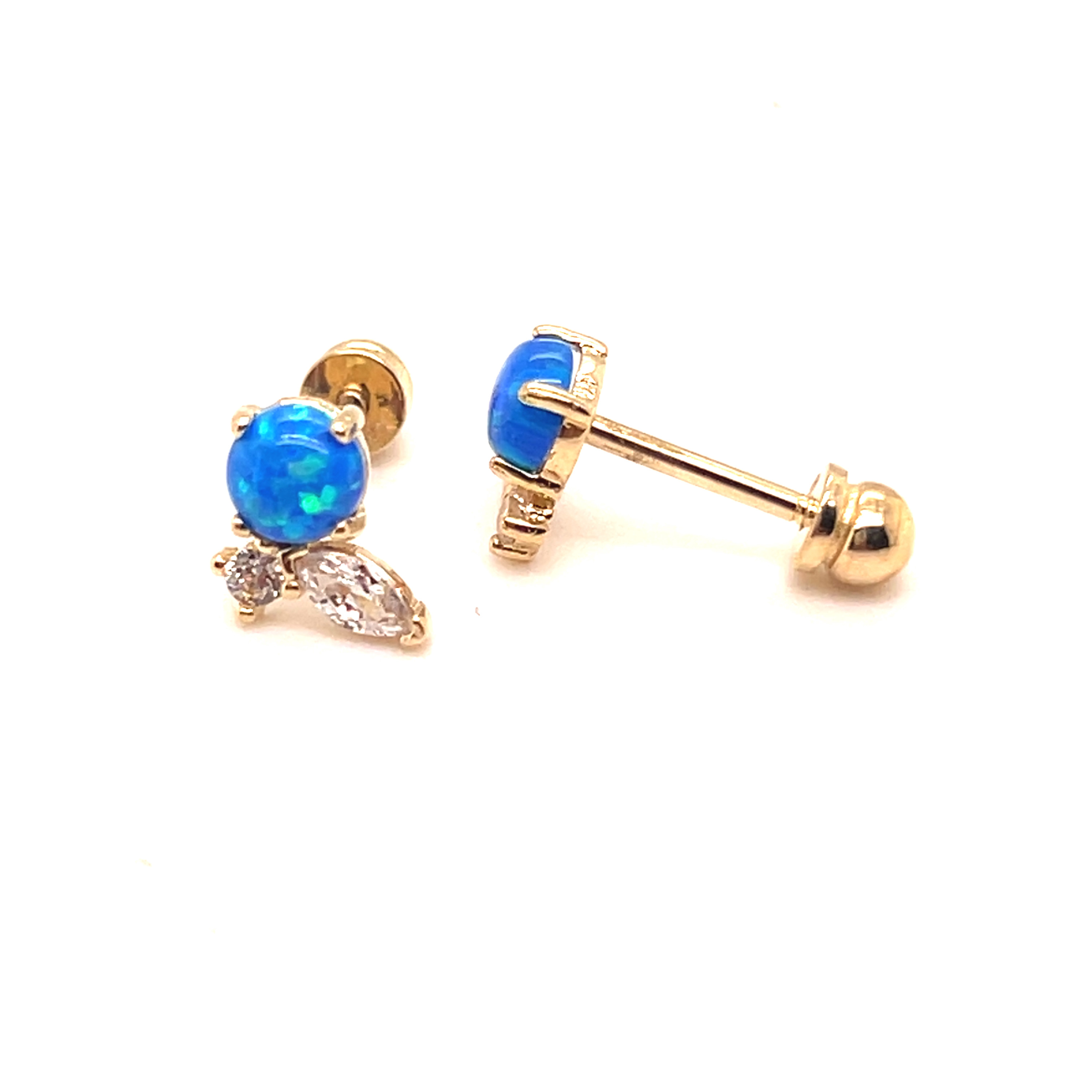 Обеци от “Jacklin hugasian” в жълто златo със син опал и циркони