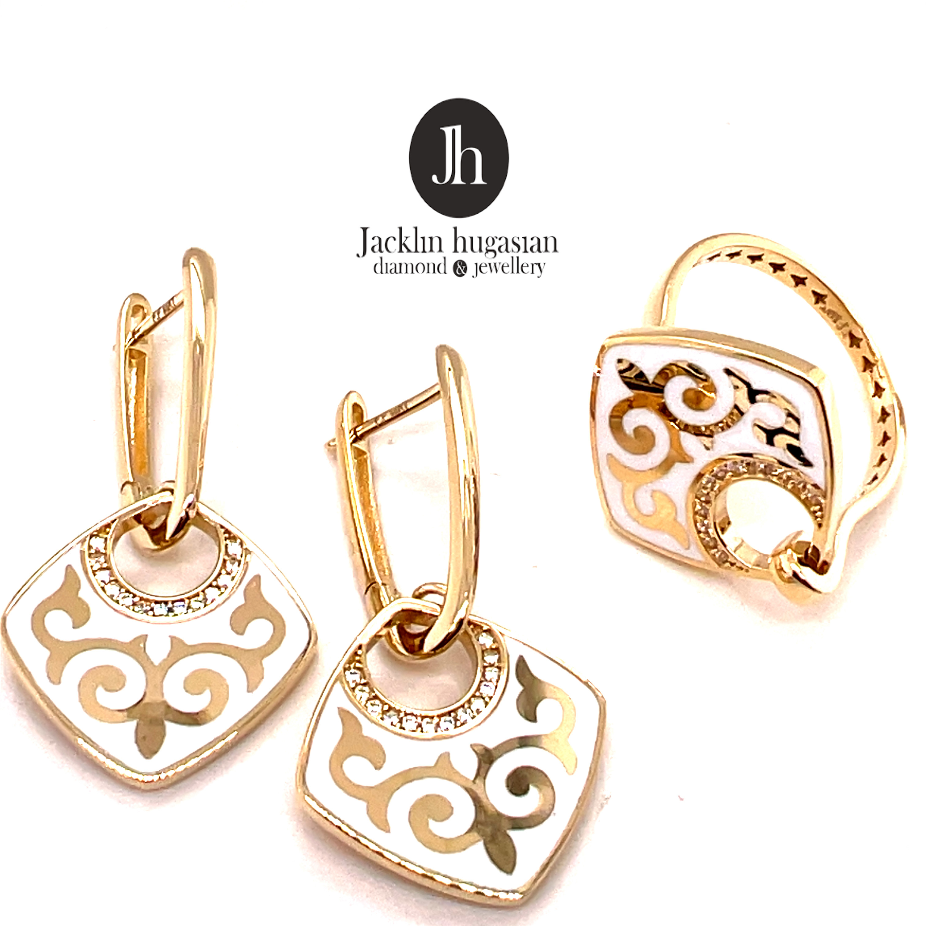 Комплект от “Jacklin hugasian” в жълто злато с емайл