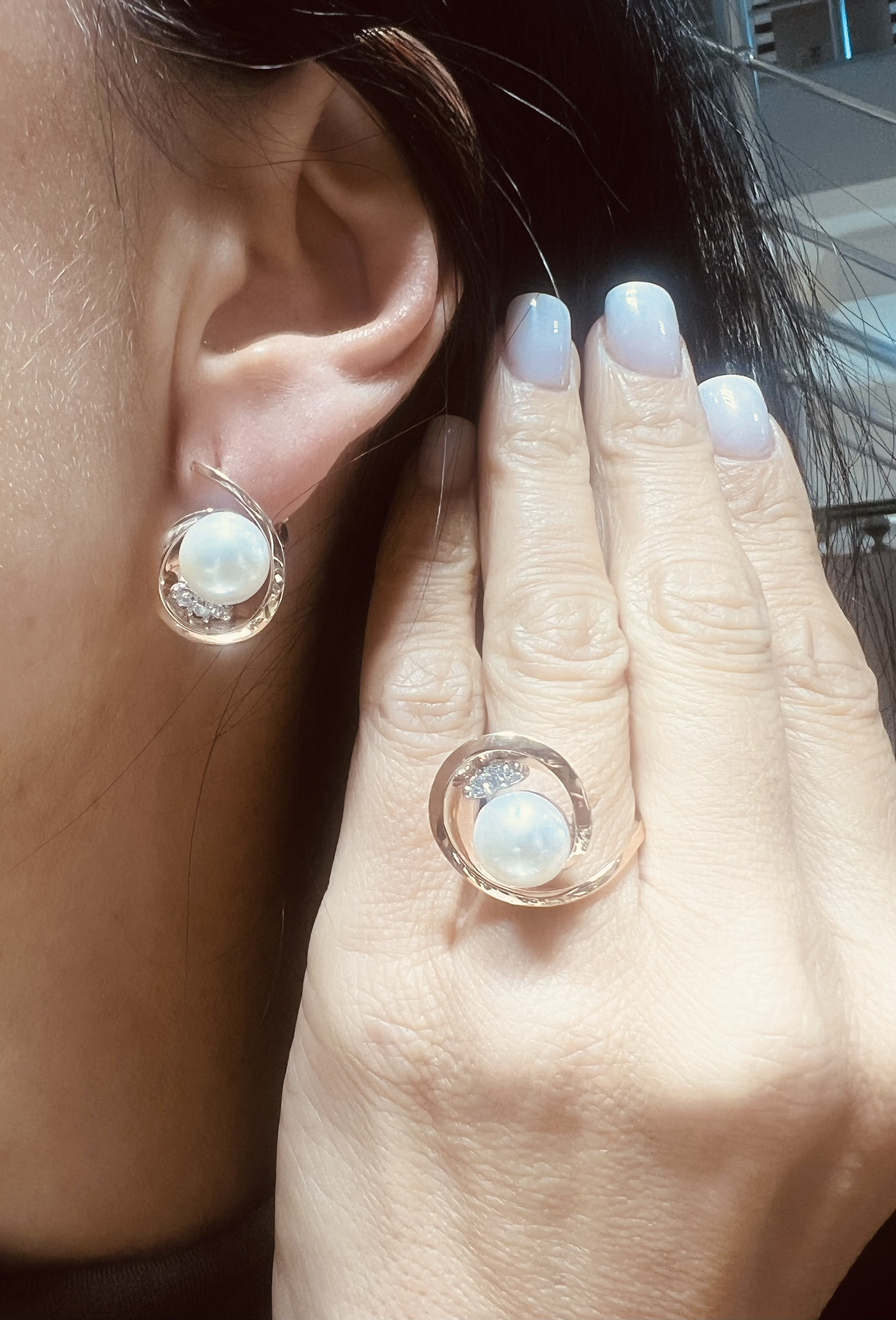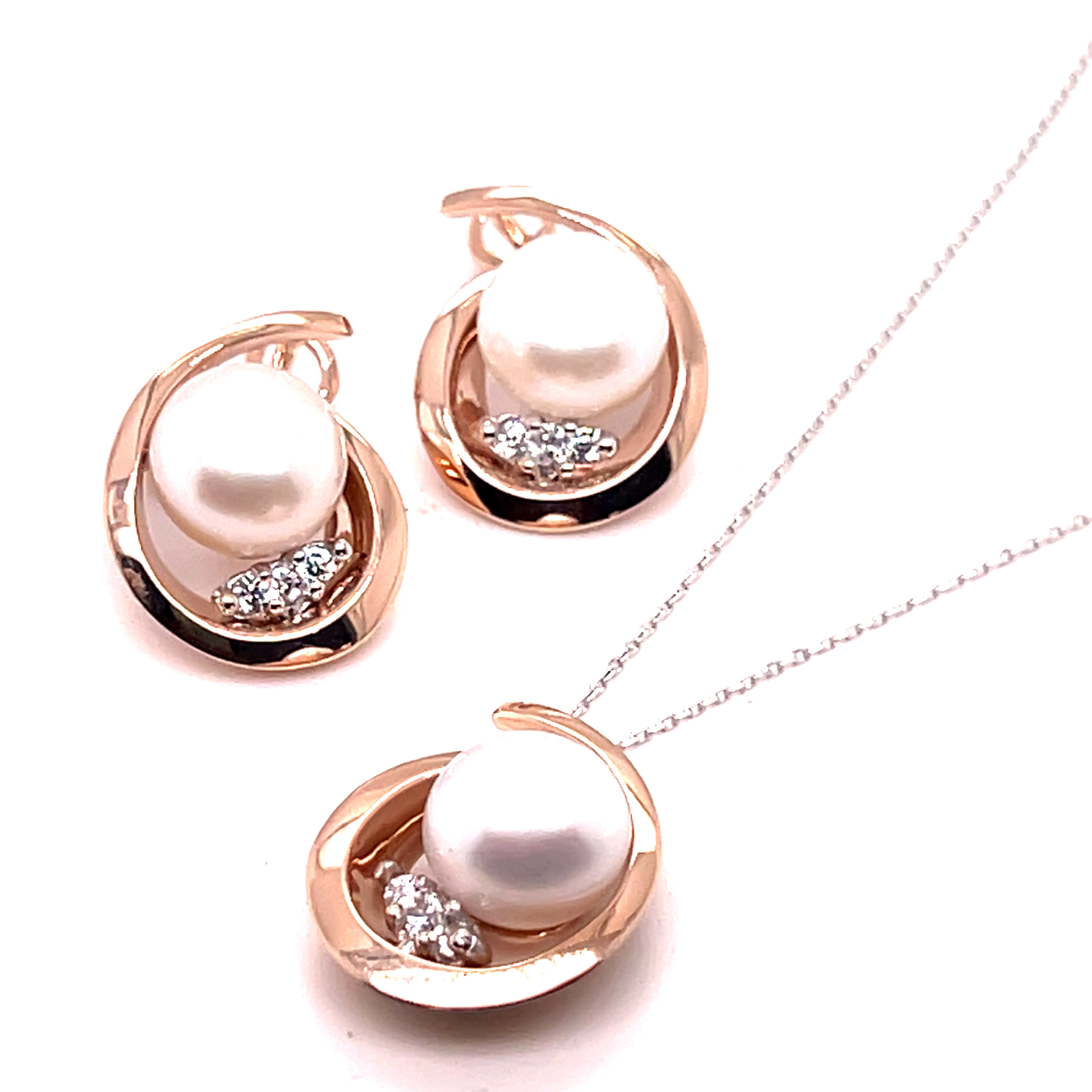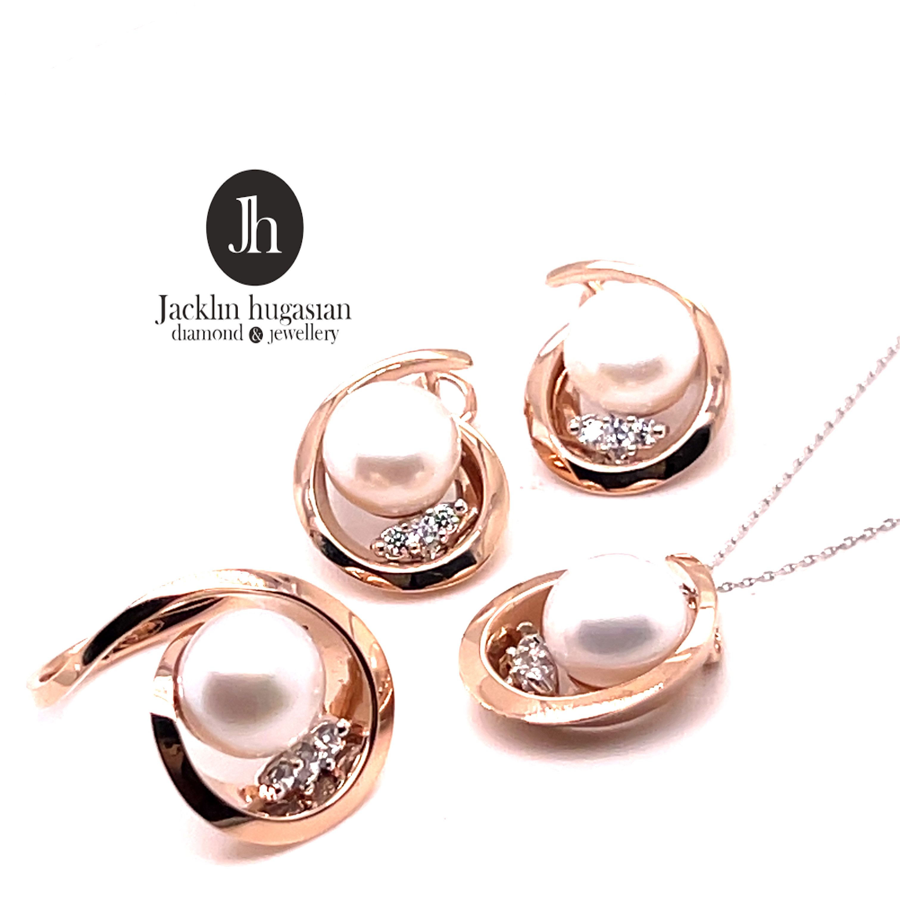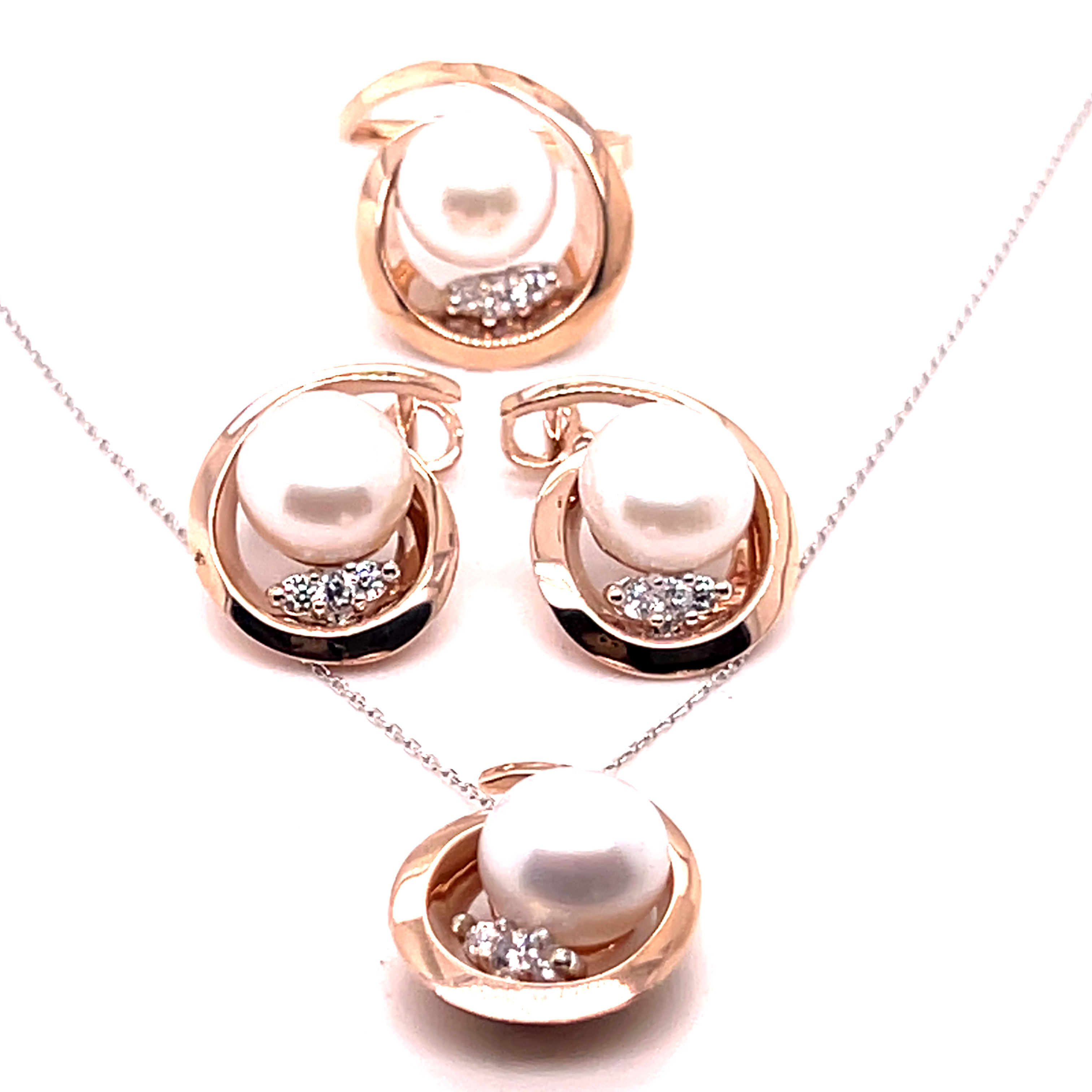 Комплект от “Jacklin hugasian” в розово злато с перла и циркони.