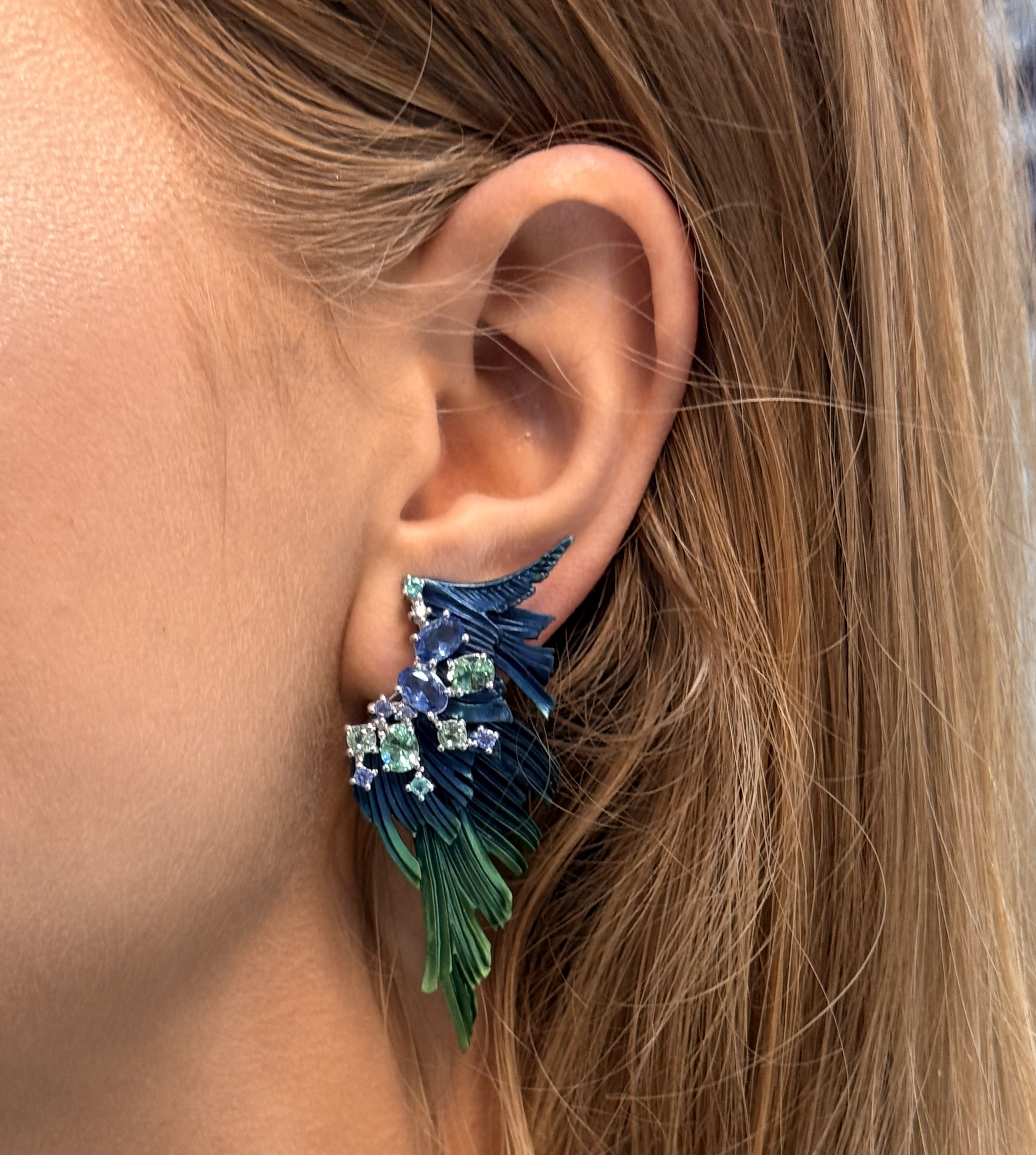 Обеци от "Jacklin hugasian" в сребро с цветно покритие, топаз и турмалин.