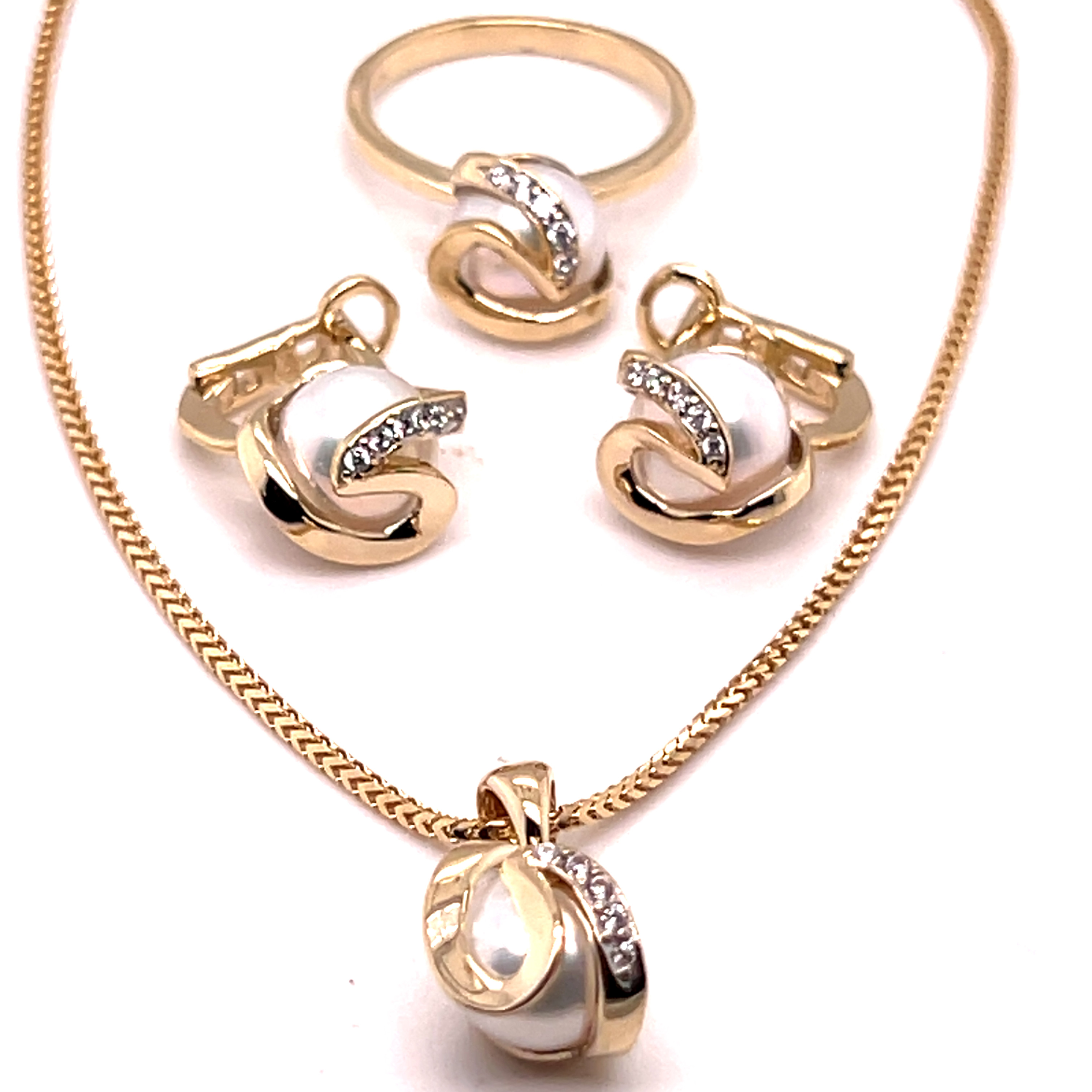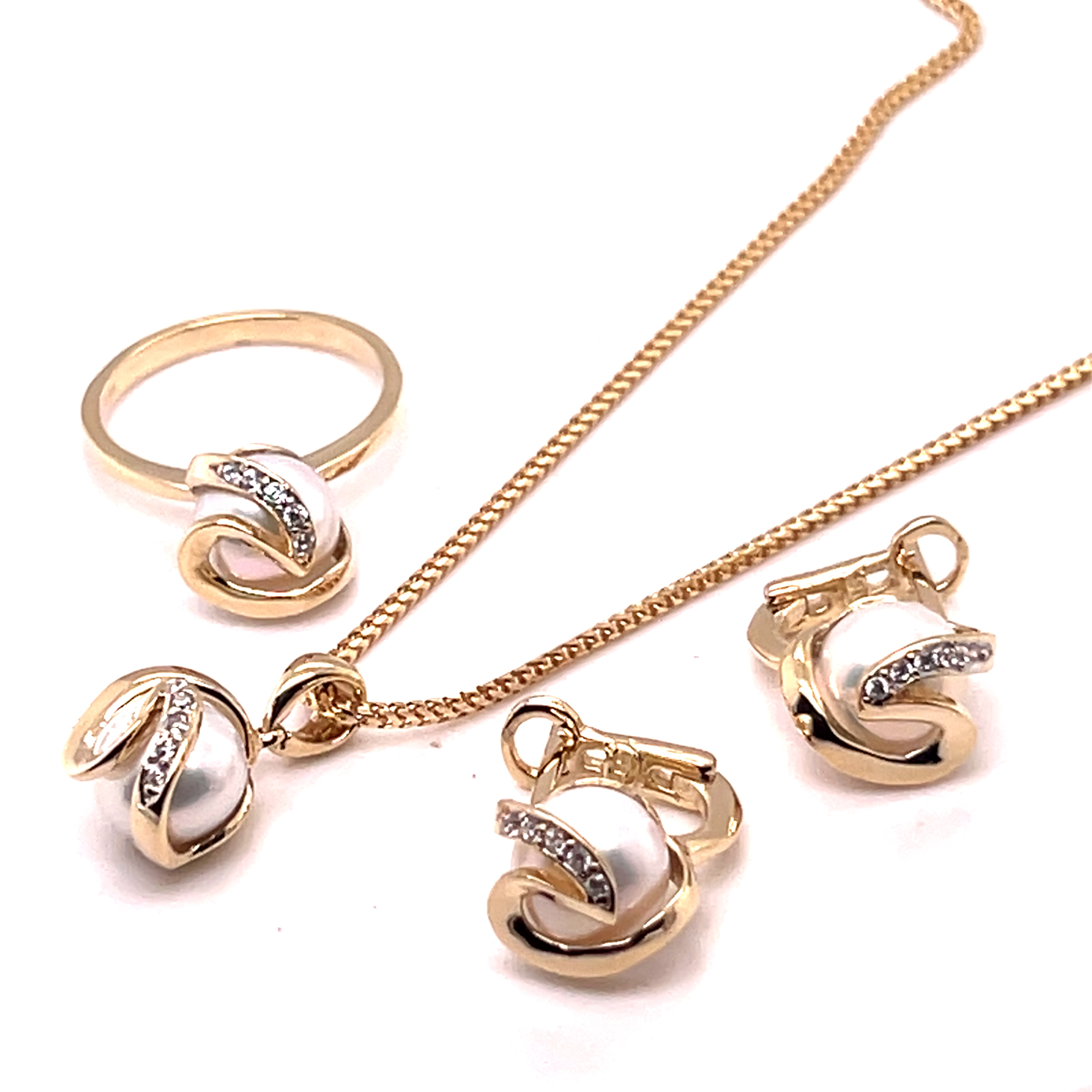 Комплект от “Jacklin hugasian” в жълто злато с перла и циркони