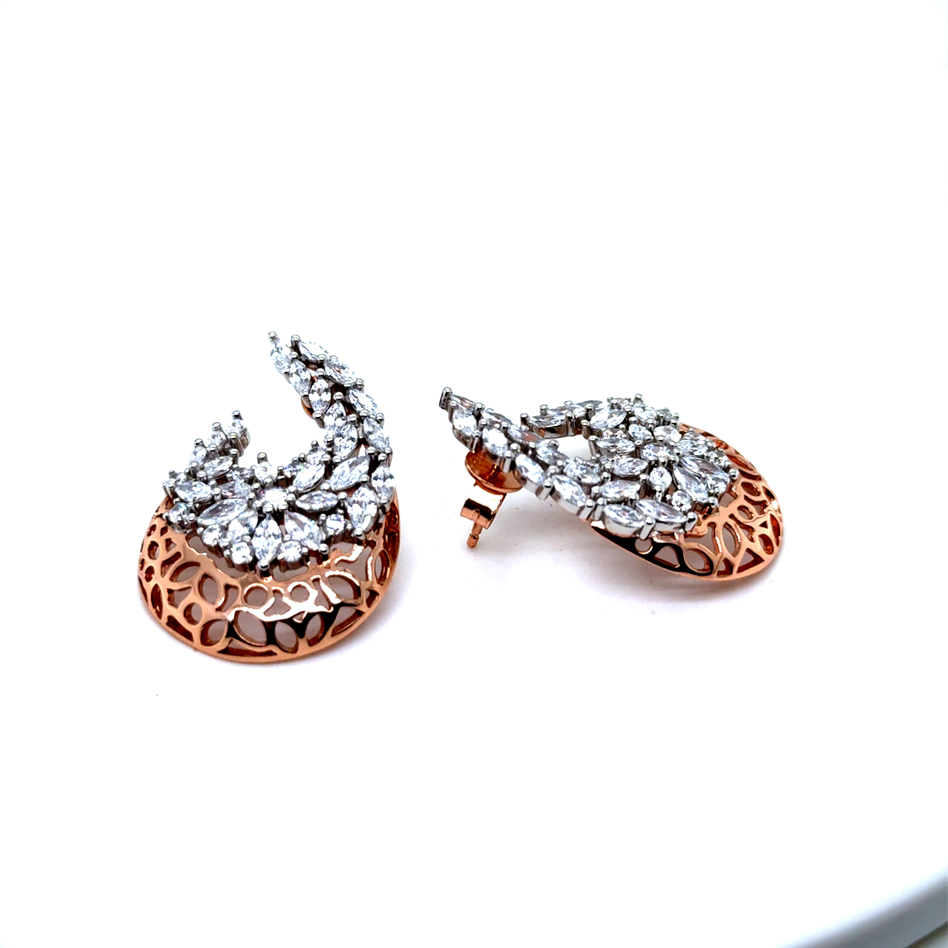 Обеци от "Jacklin hugasian" в розово сребро и циркони.
