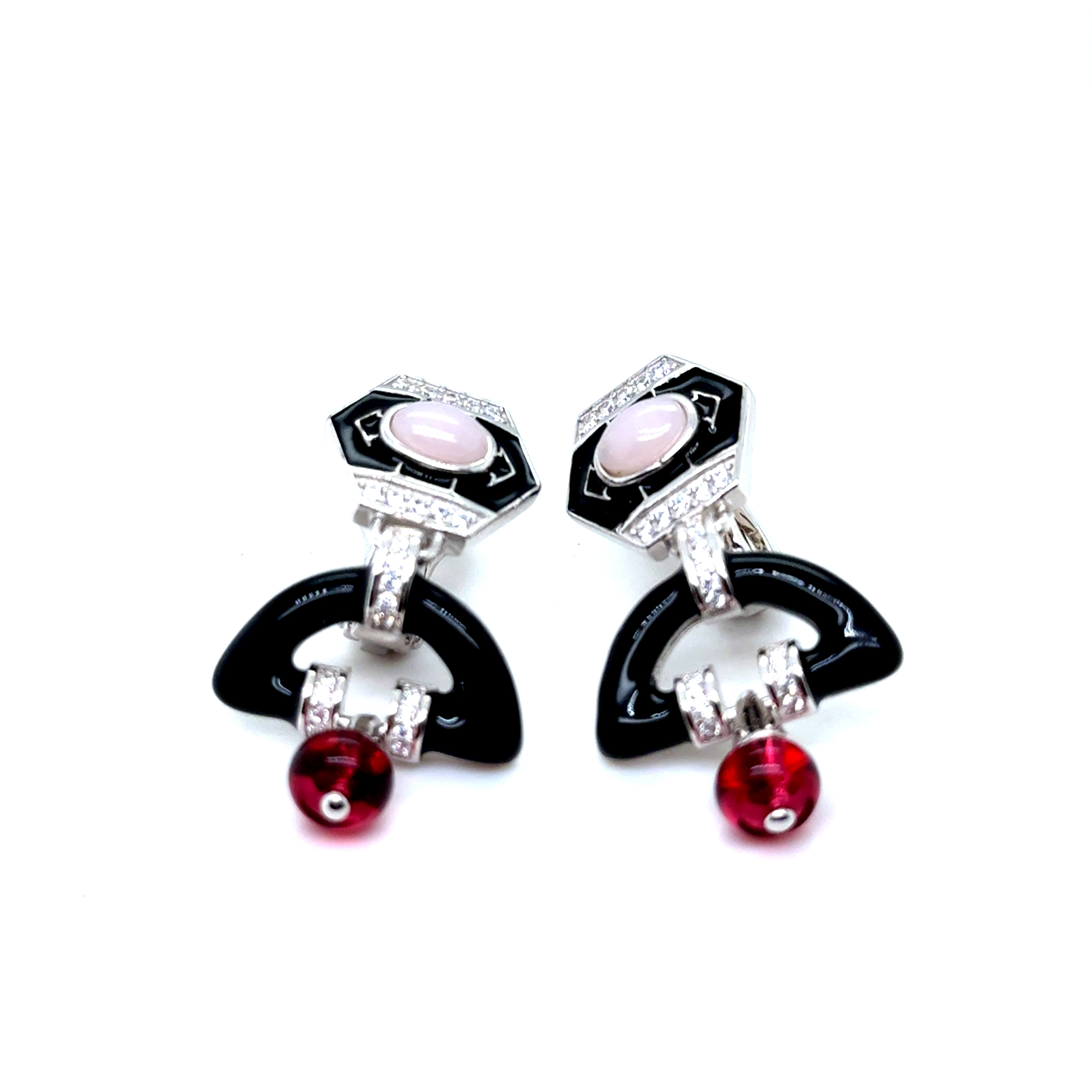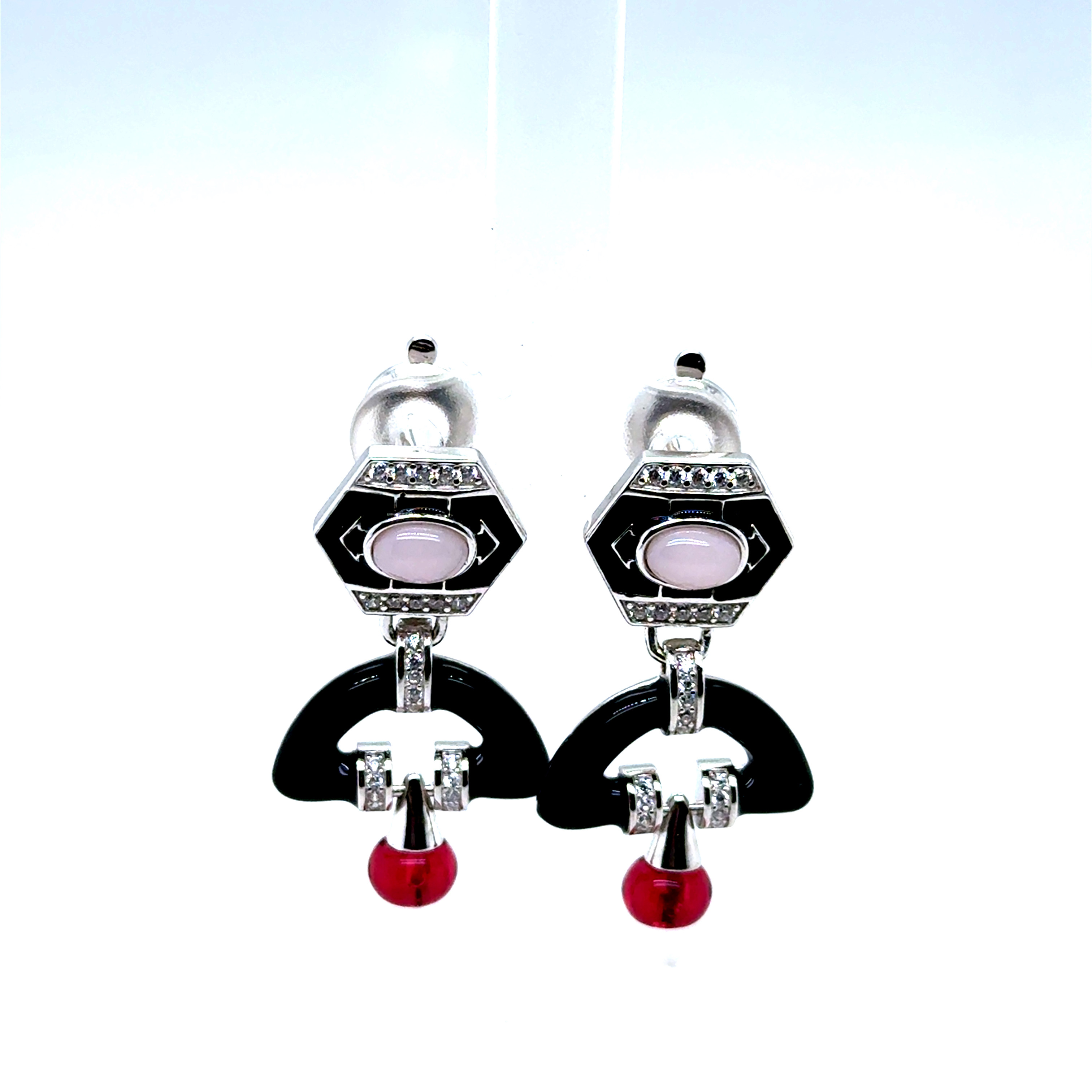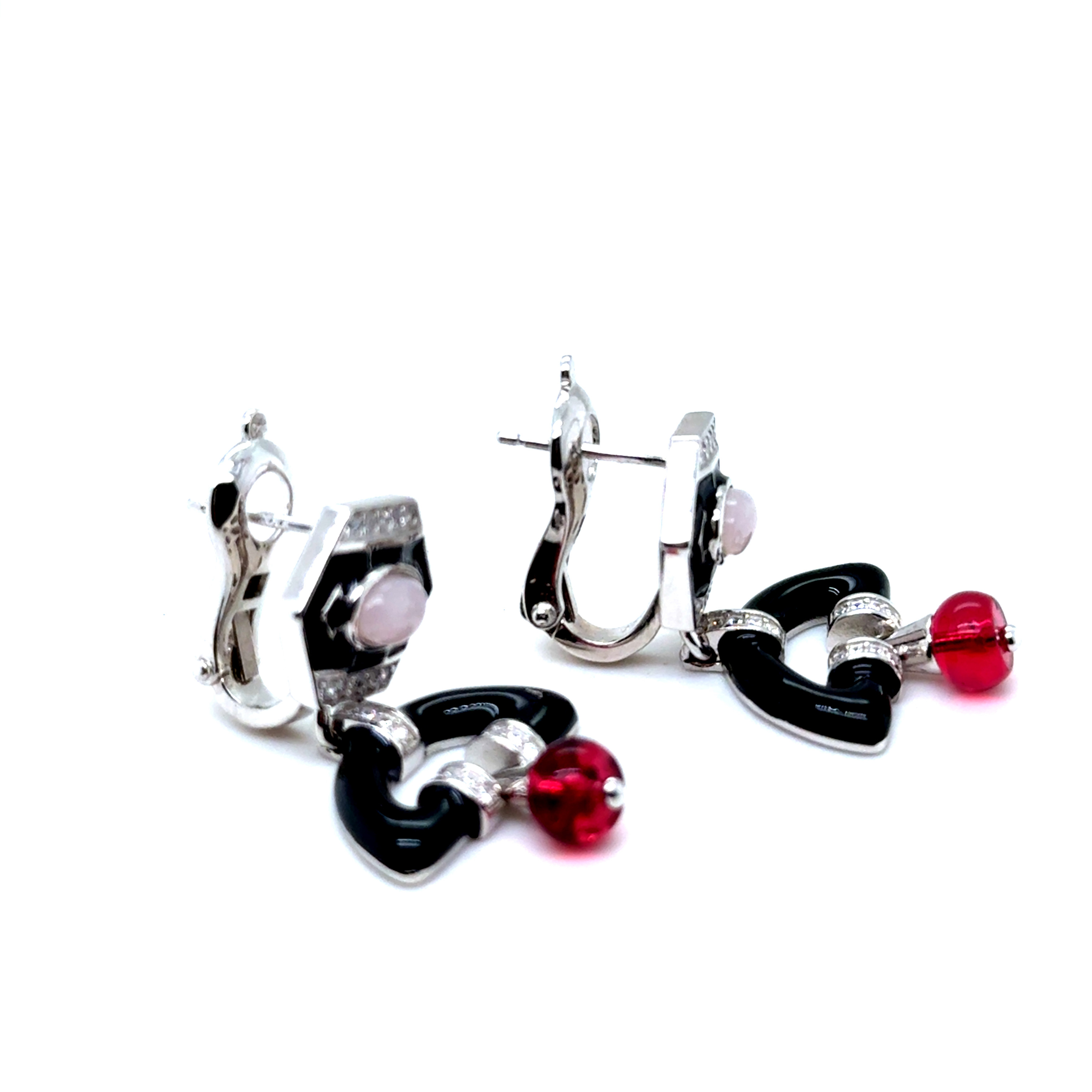 Обеци от “Jacklin hugasian” в сребро,розош кварц,рубин,емайл и циркони.