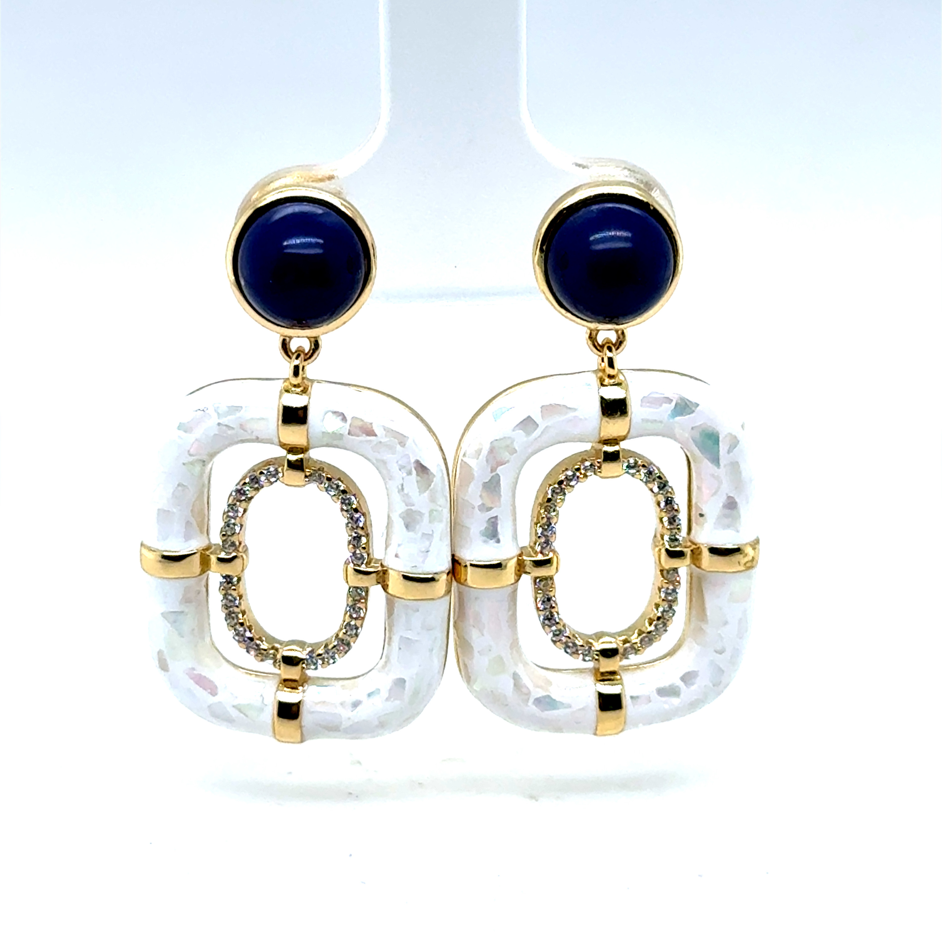 Обеци от “Jacklin hugasian” в сребро с позлата,естествен седеф,лапис лазули и циркони.