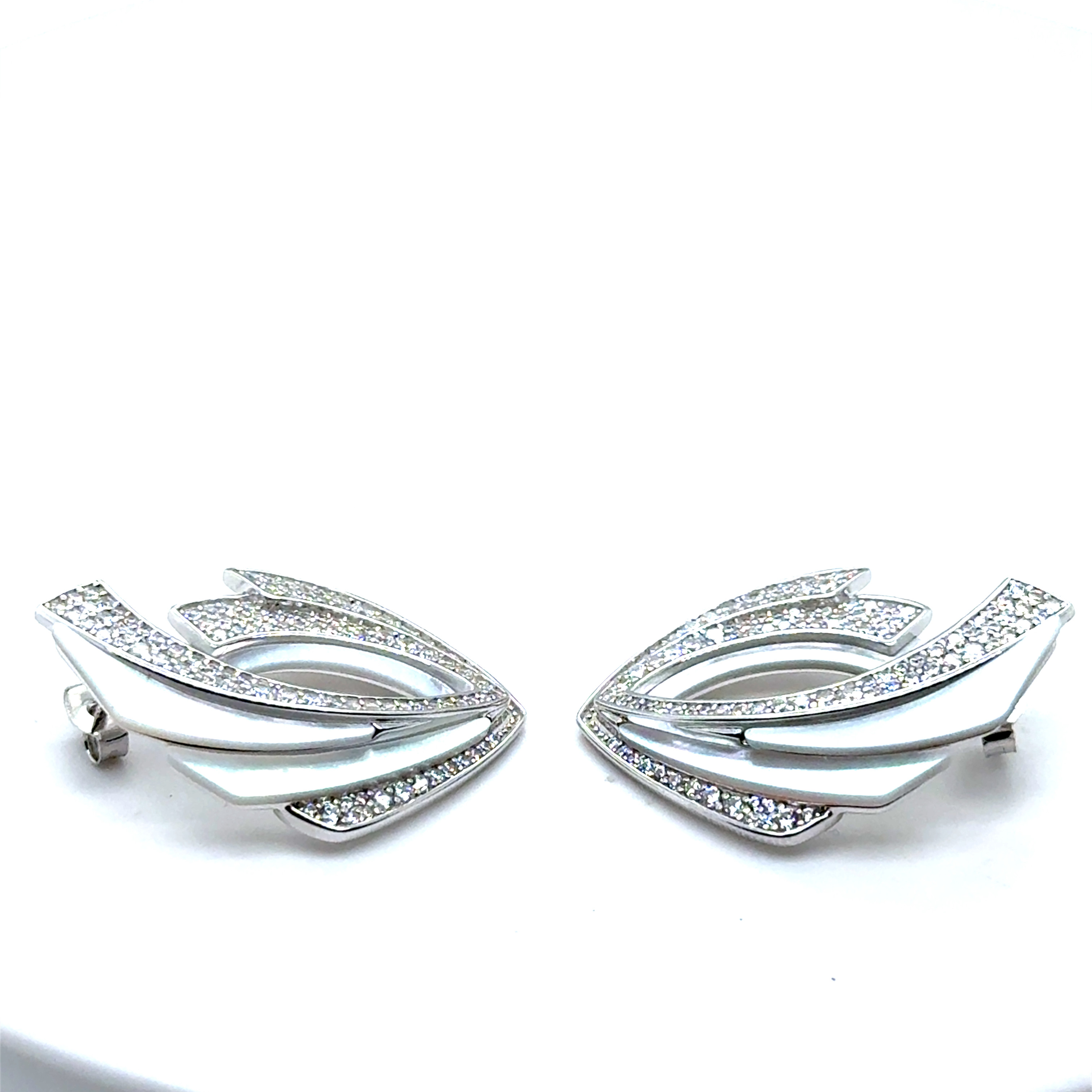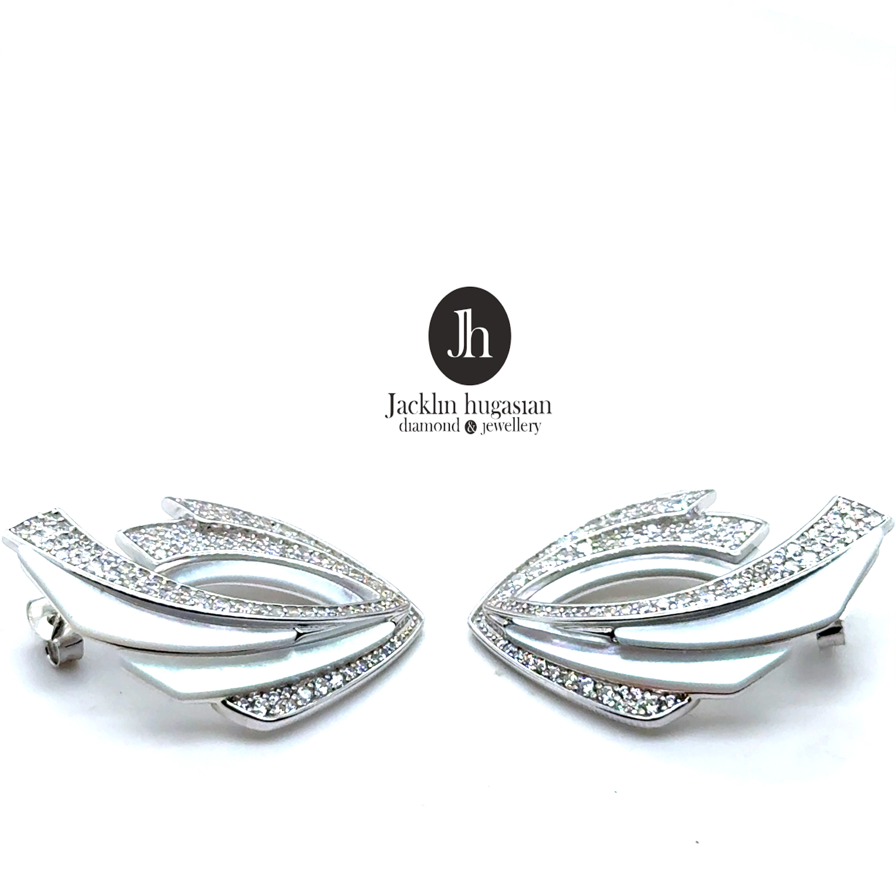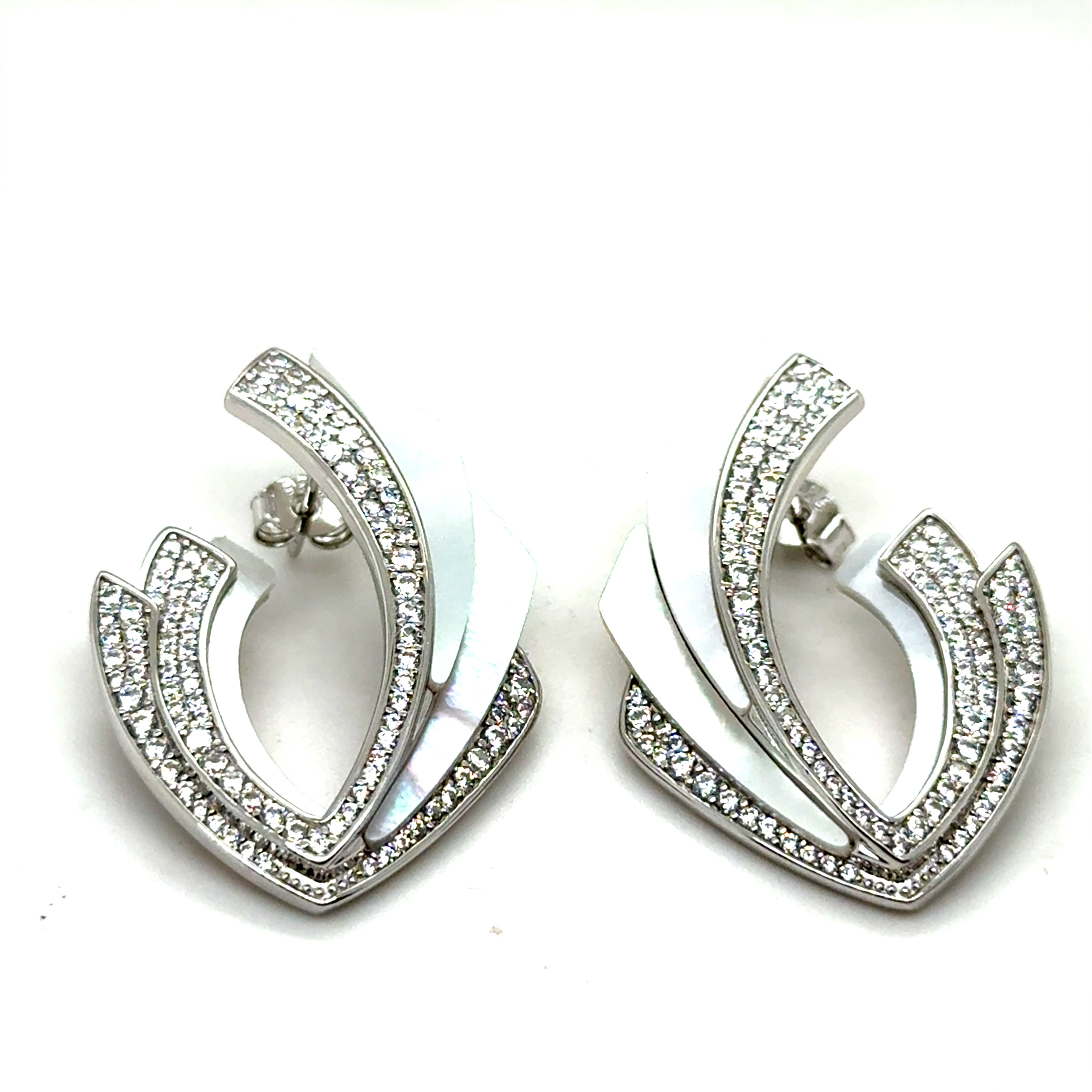 Обеци от "Jacklin hugasian" в сребро с циркони и естествен седеф.