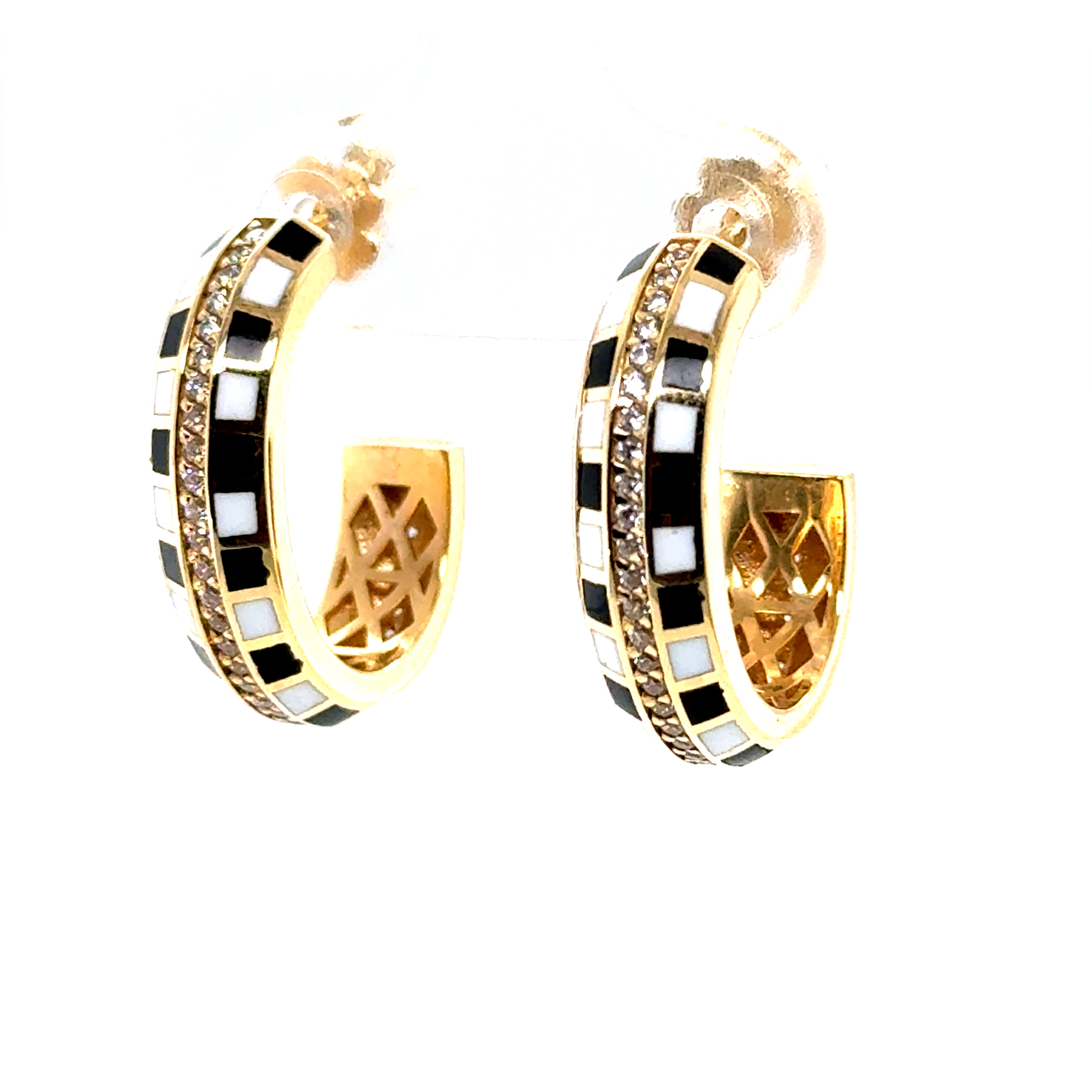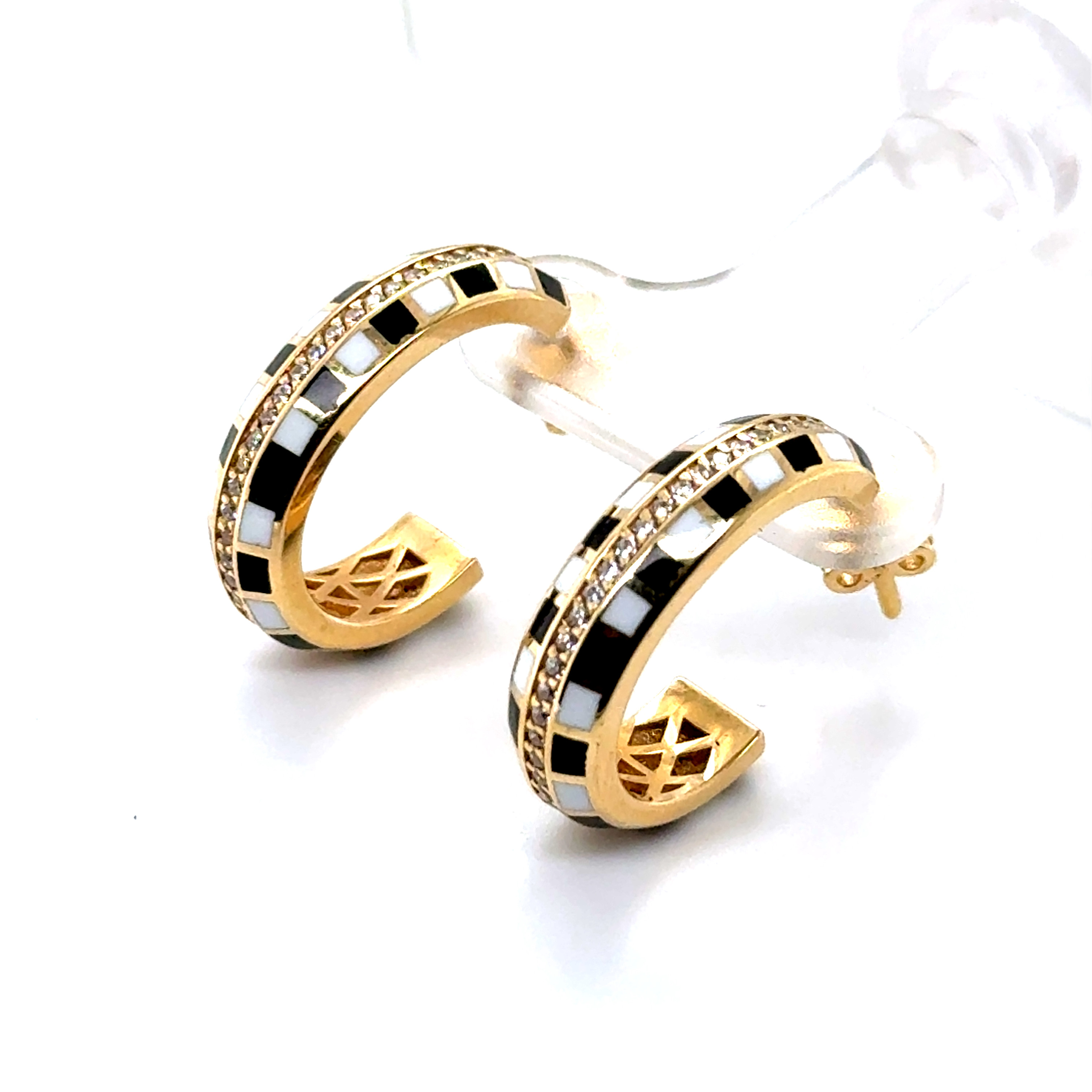 Обеци от “Jacklin hugasian” в жълто златo с цветен емайл и циркони.