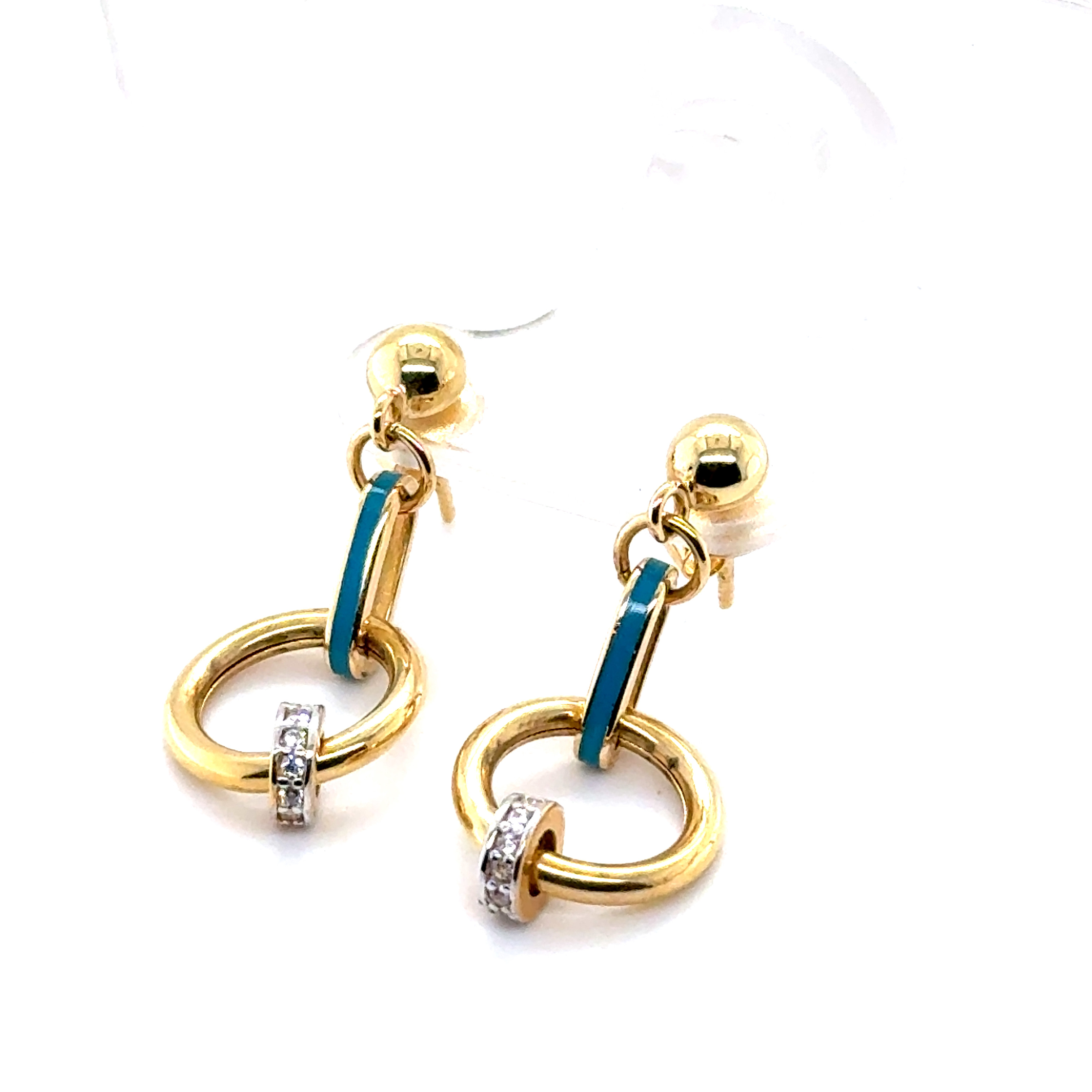 Обеци от “Jacklin hugasian” в жълто злато гланц с цветен емайл и циркони.