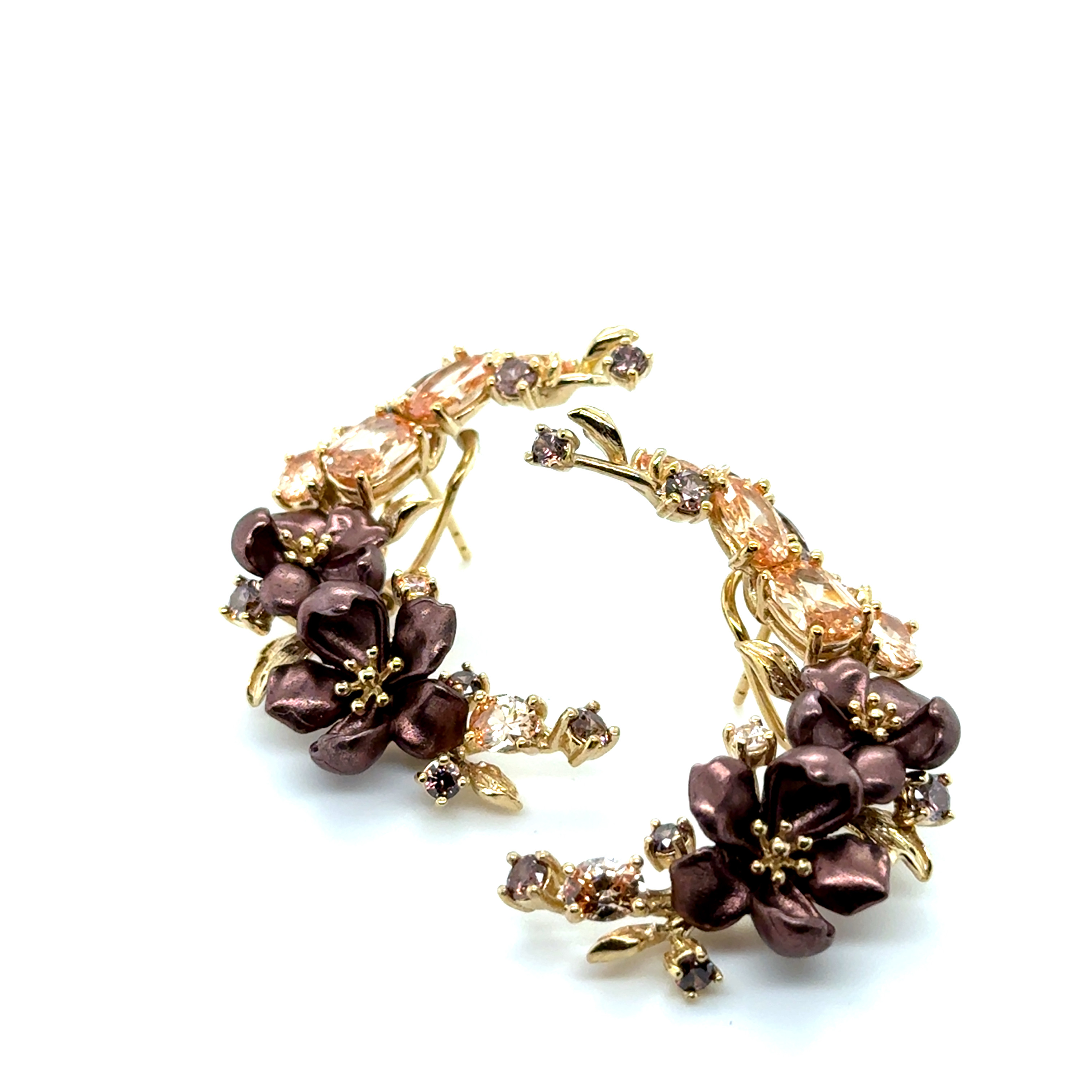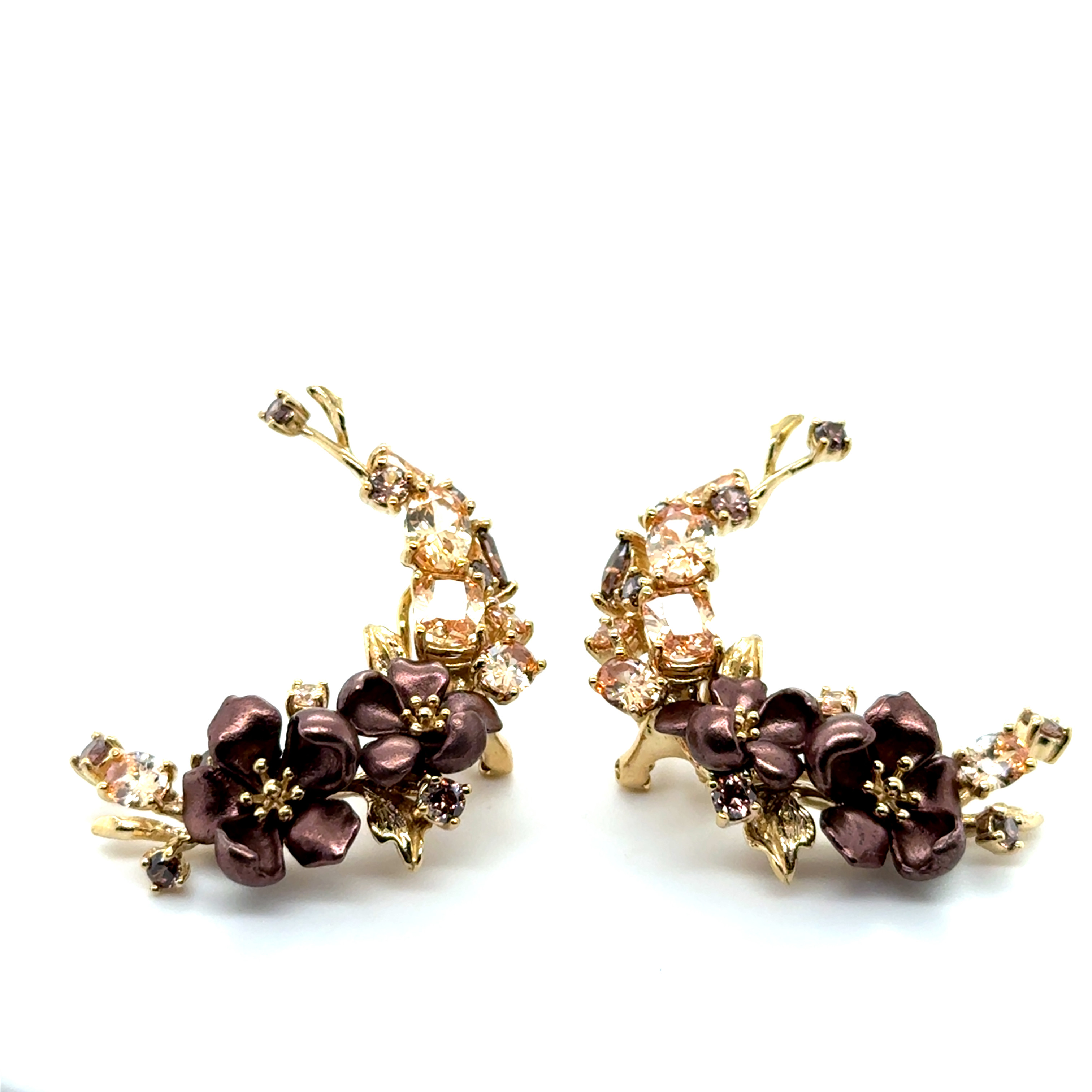Обеци от "Jacklin hugasian" в цветно сребро с позлата,златист и опушен топаз