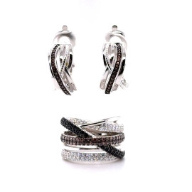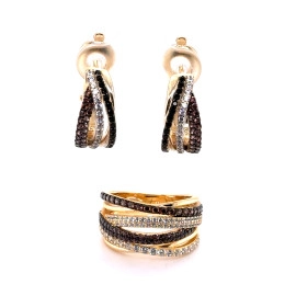 Комплект, обеци и пръстен от “Jacklin hugasian” в сребро с позлата и циркони
