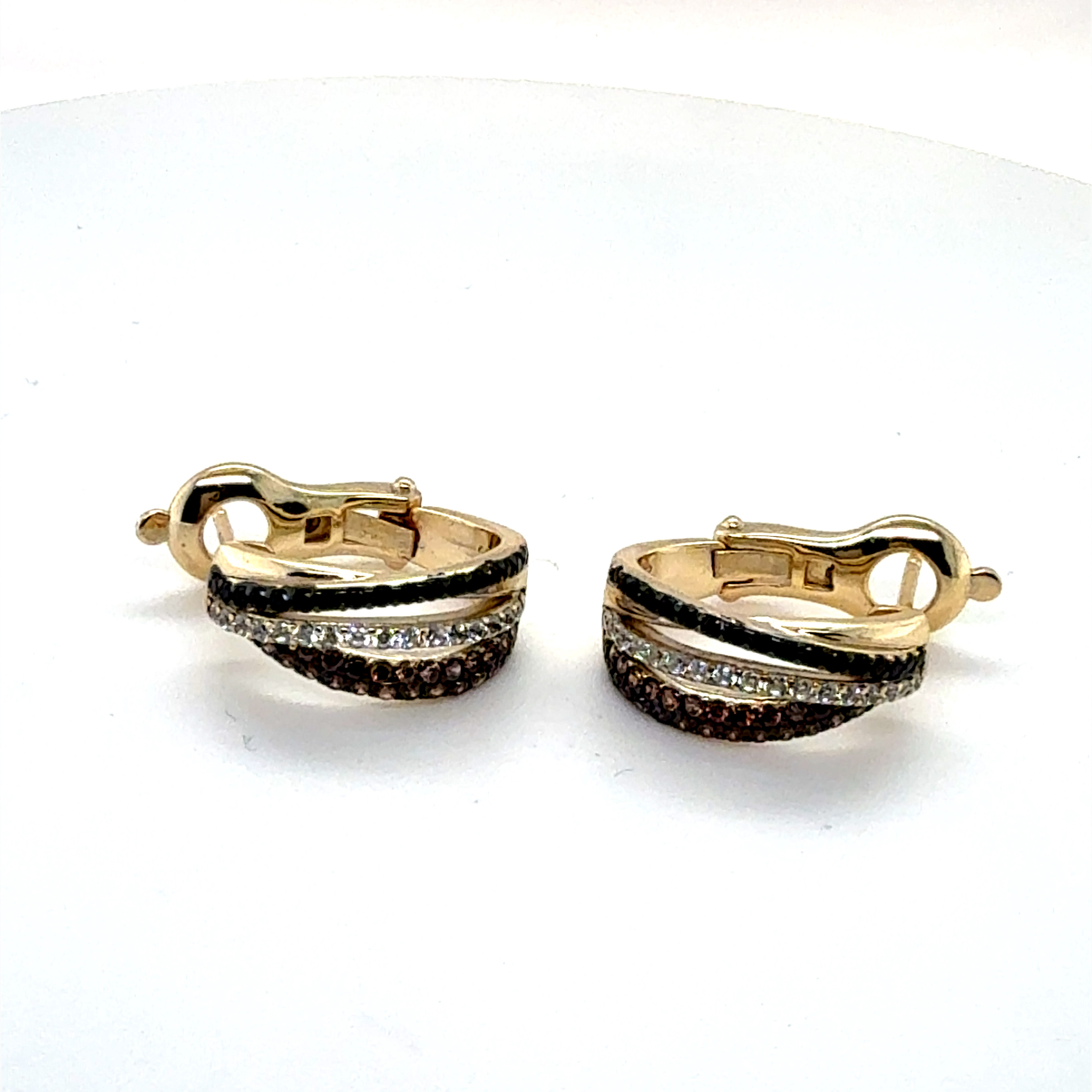 Обеци от "Jacklin hugasian" в сребро с позлата, с оникс,опушен топаз и циркони.