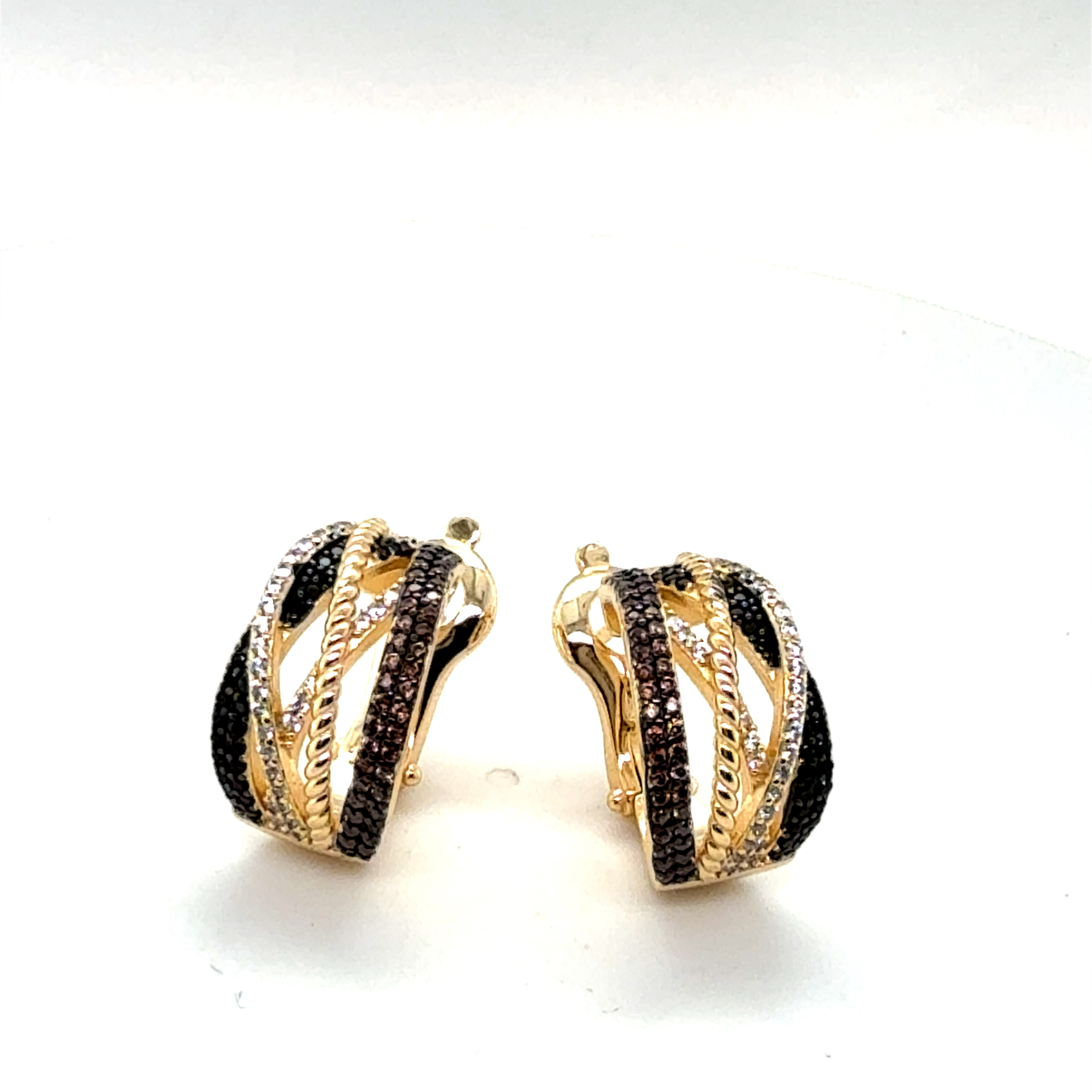 Обеци от "Jacklin hugasian" в сребро с позлата, с оникс, опушен топаз и циркони.
