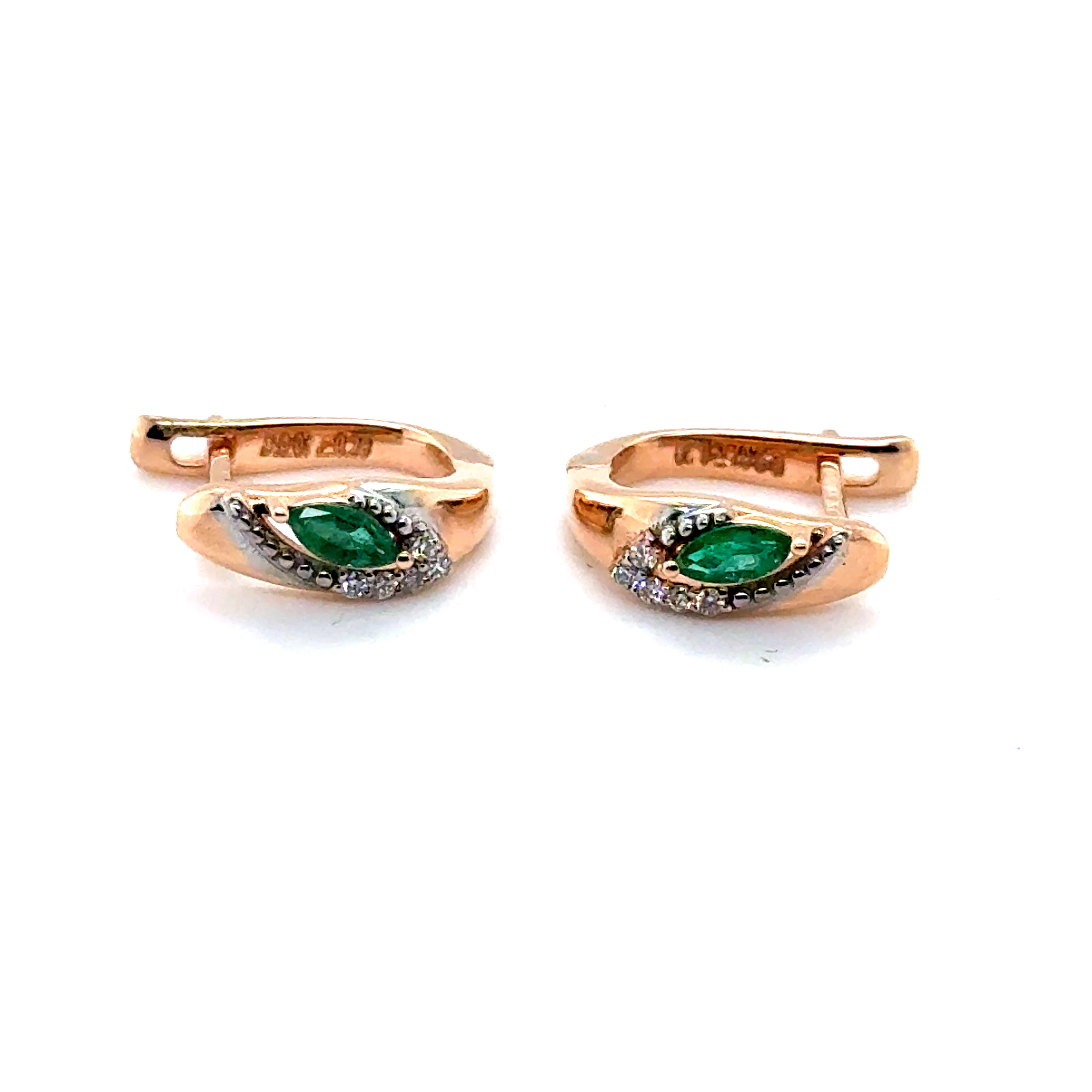 Обеци от "Jacklin hugasian" в розово злато с изумруд и диаманти.