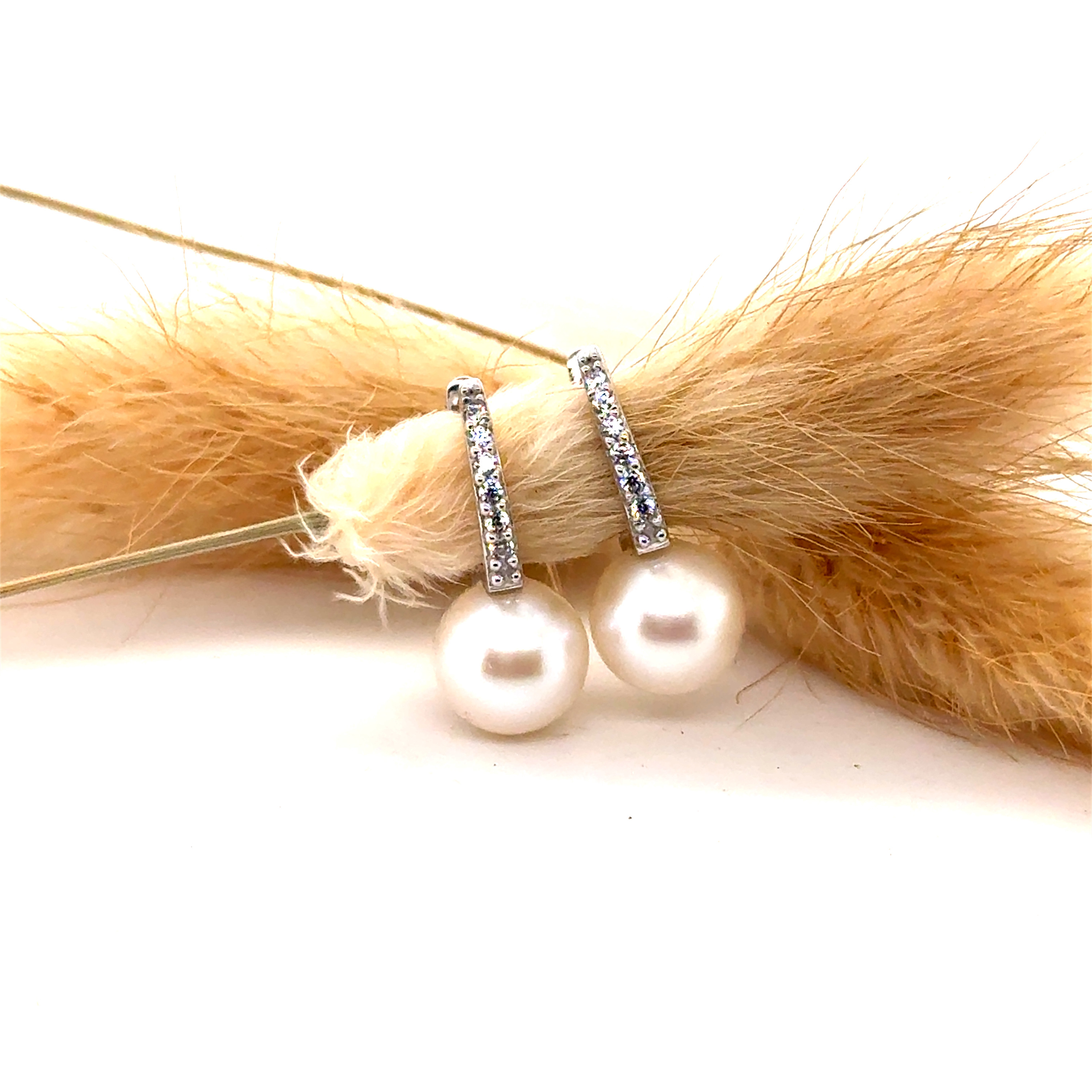 Обеци от “Jacklin hugasian” в жълто злато с перла и циркони