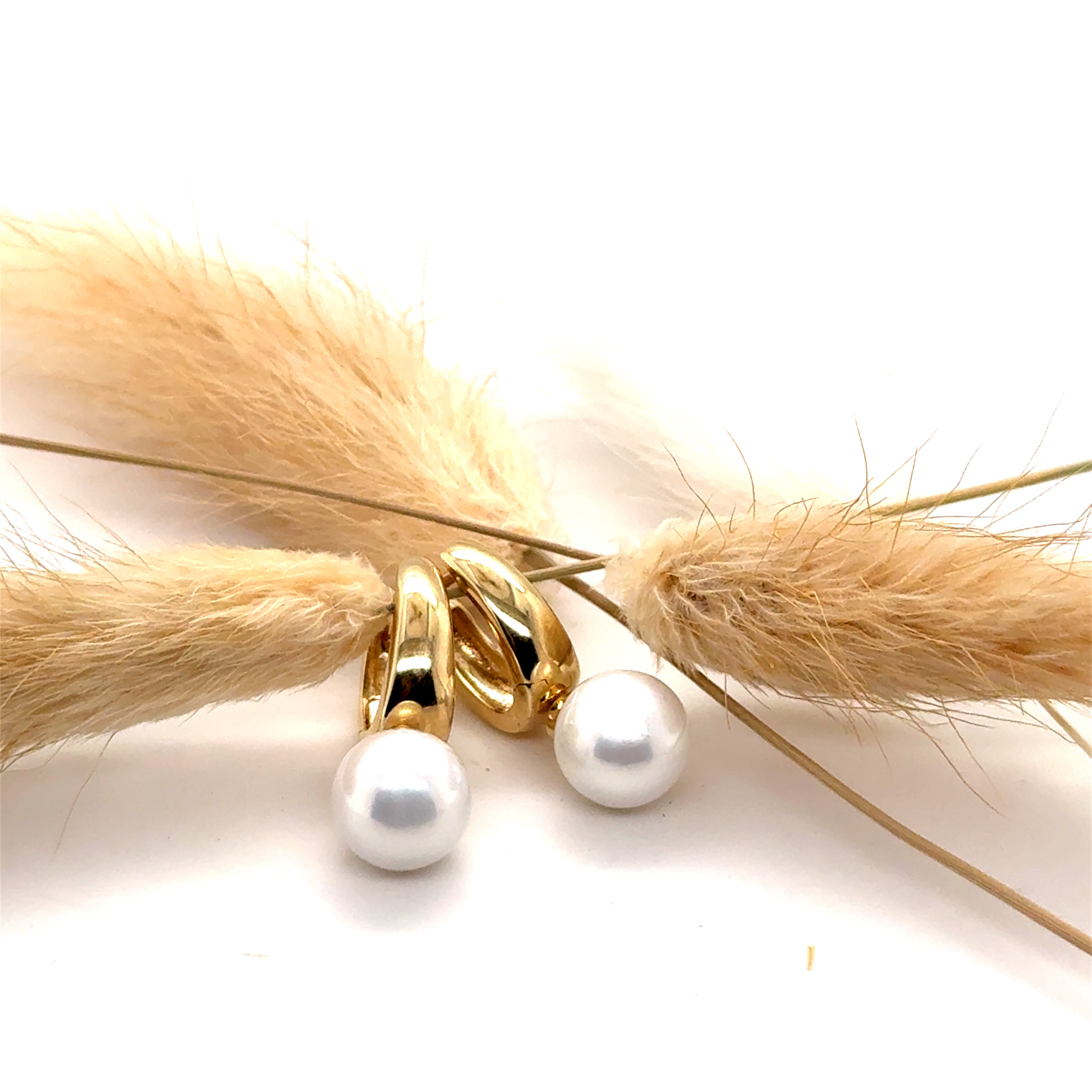 Обеци от “Jacklin hugasian” в жълто злато с перла и циркони