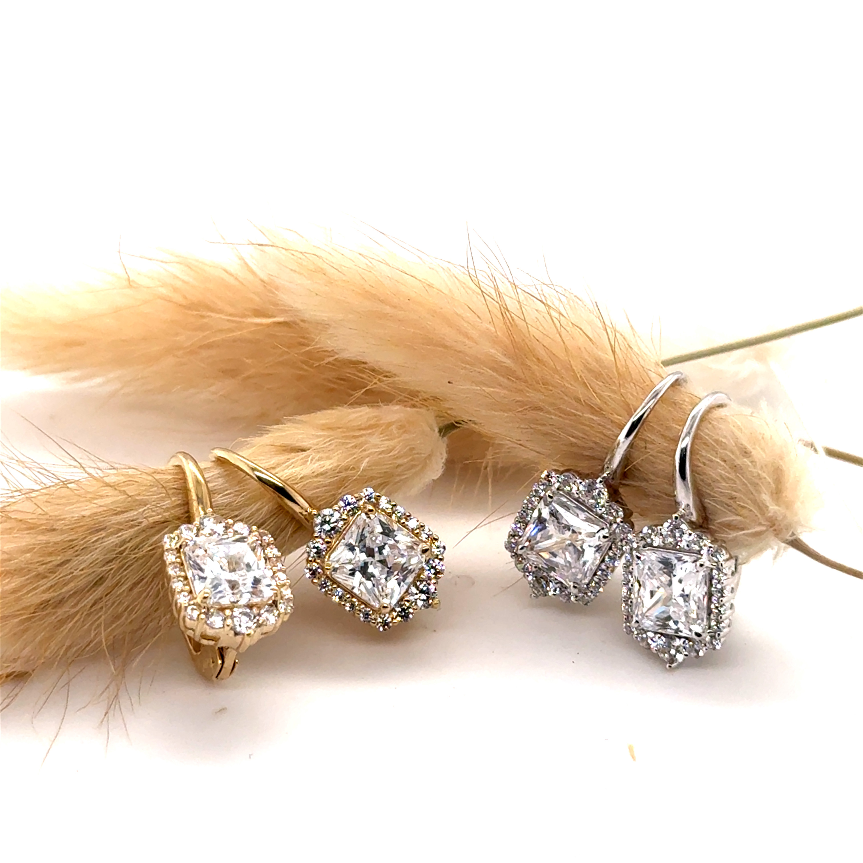 Обеци от “Jacklin hugasian” в бяло и в жълто злато с циркони