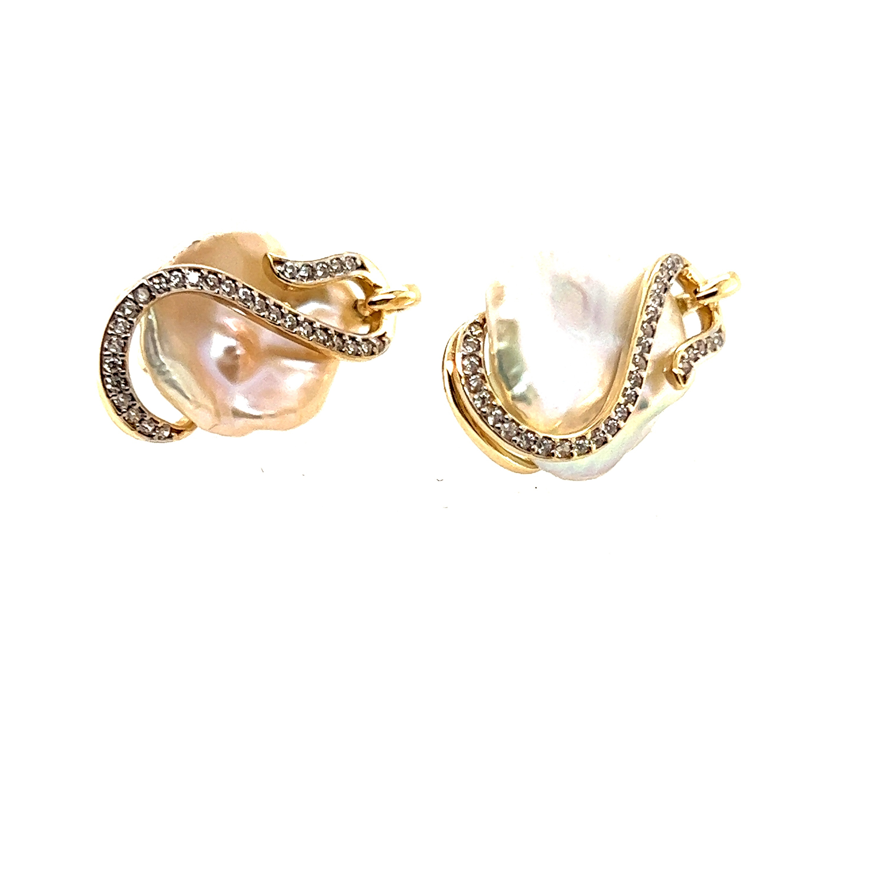 Обеци от " Jacklin hugasian " в жълто злато с перла и циркони.