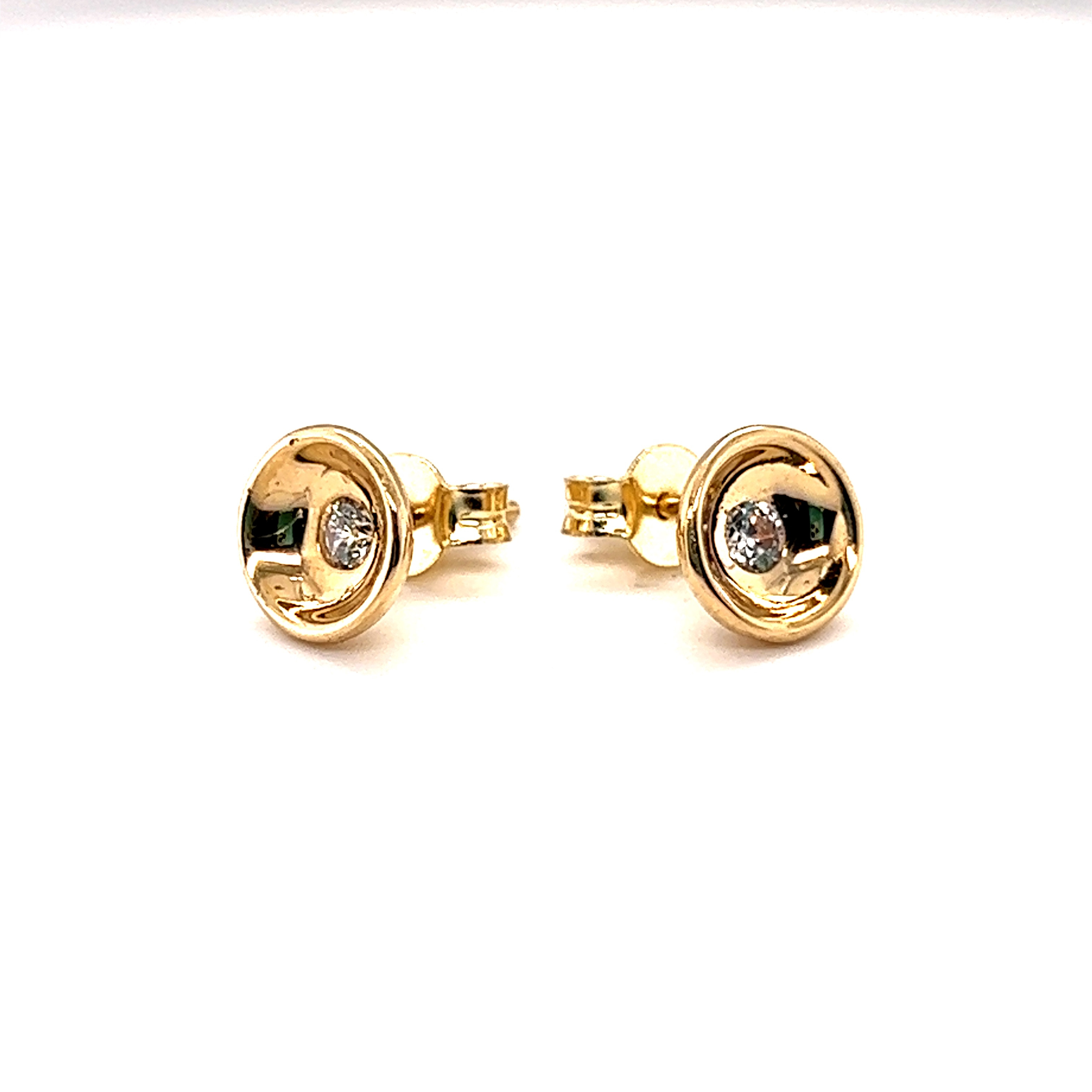 Обеци от “Jacklin hugasian” в жълто злато с цирконий.