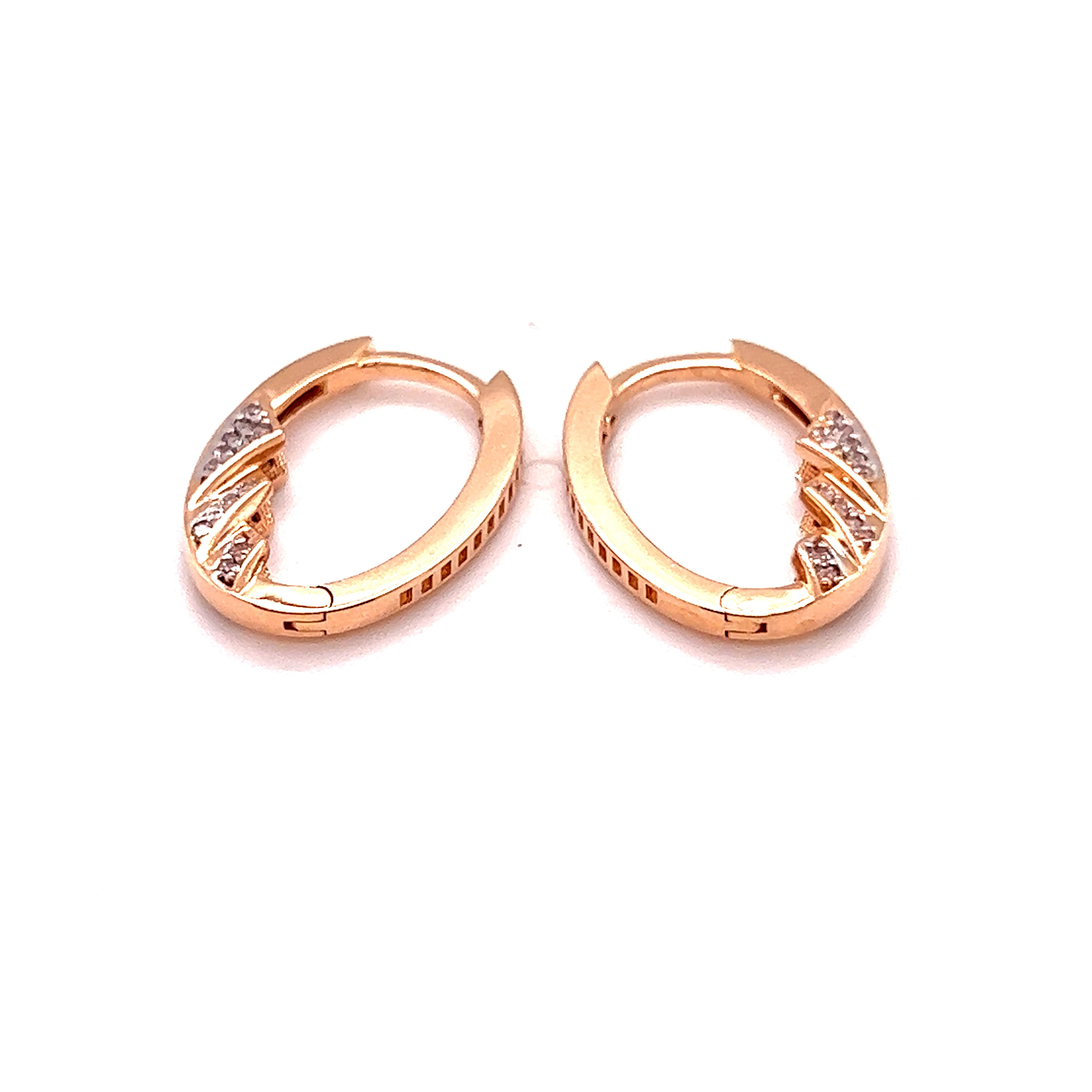 Обеци от “Jacklin hugasian” в розово злато с цирконии. Дължина 2.00см / Широчина 1.3см