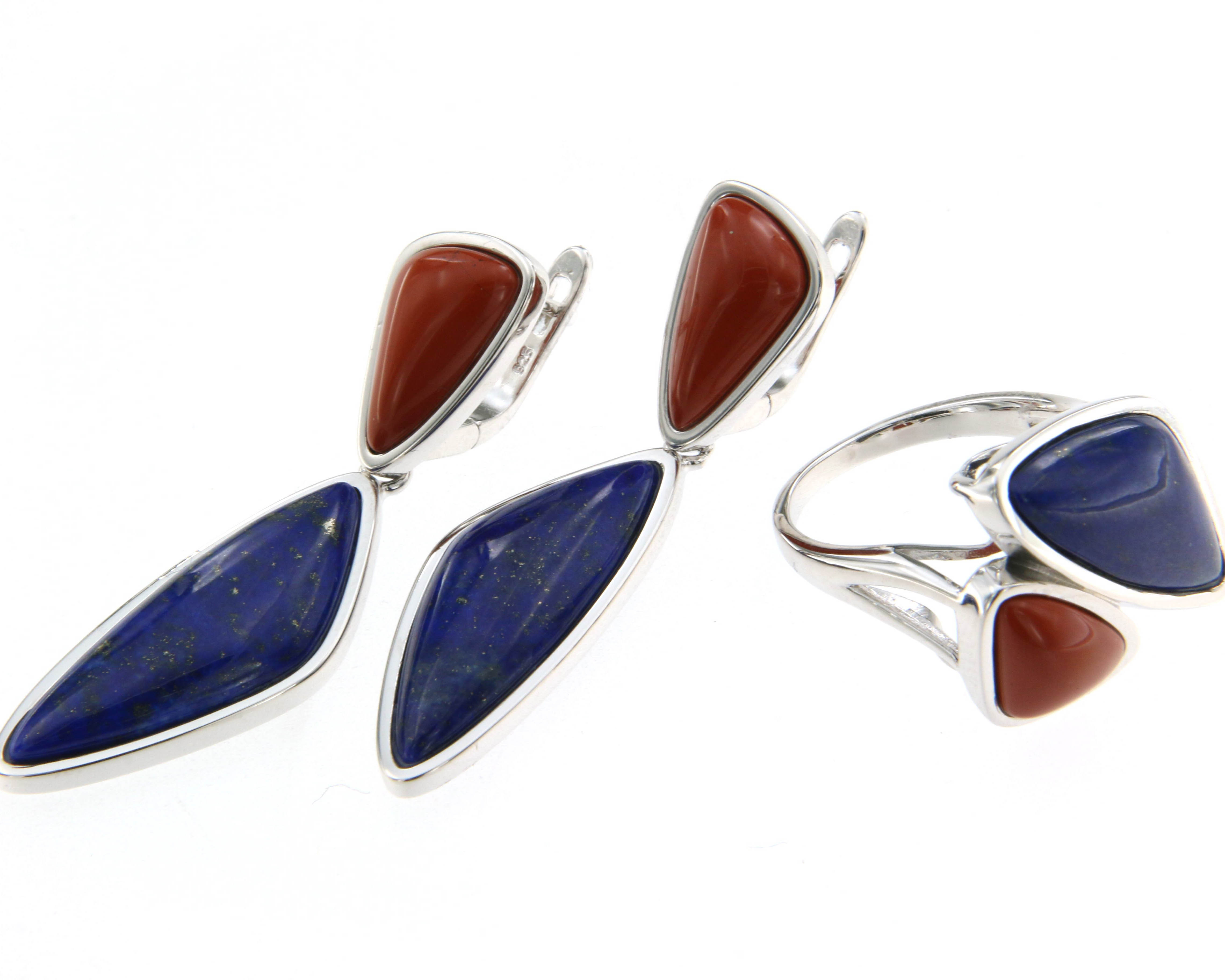 Пръстен от "Jacklin hugasian" в сребро с карнеол и лапис лазули