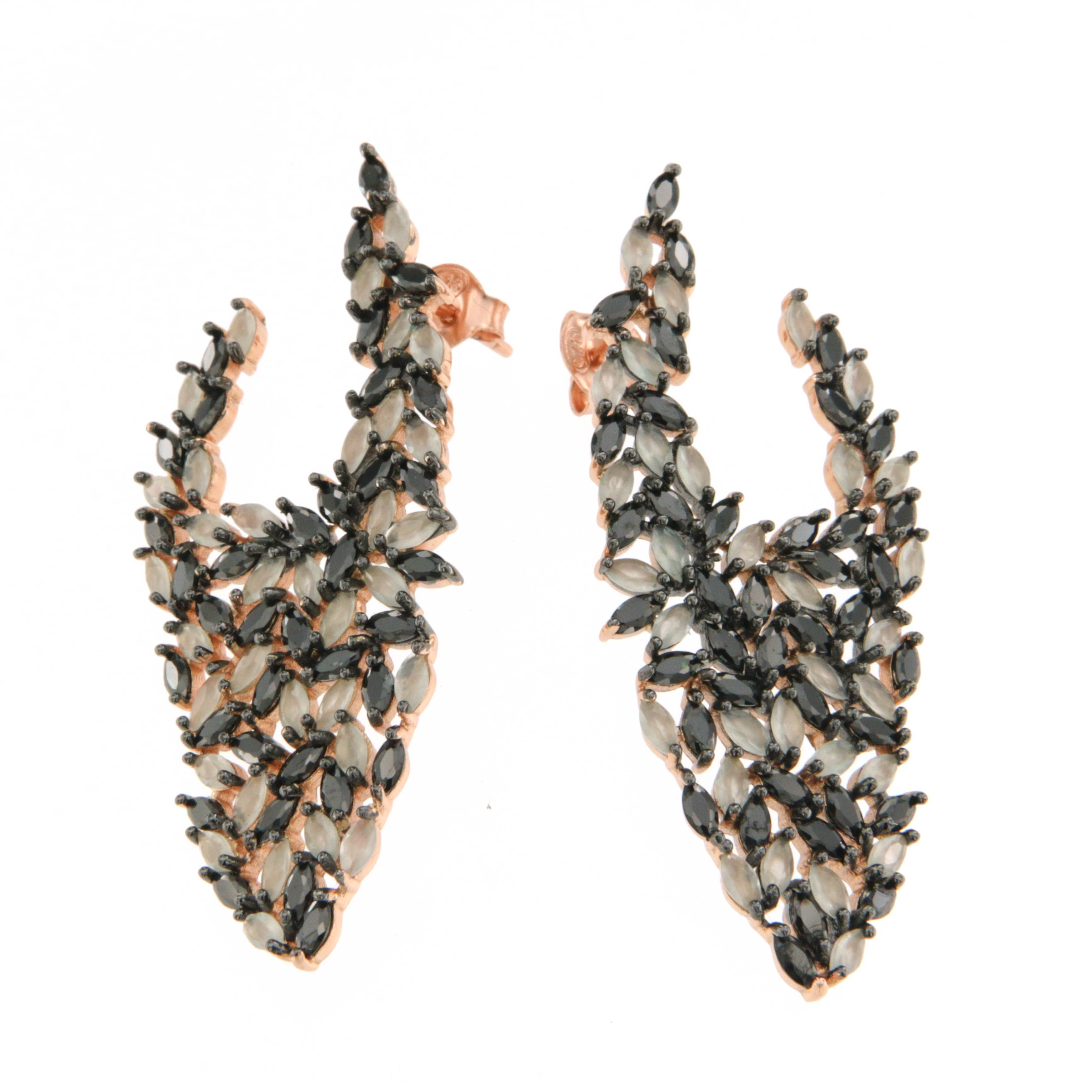 Обеци от" Jacklin hugasian " розово сребро с бял ахат и оникс .
