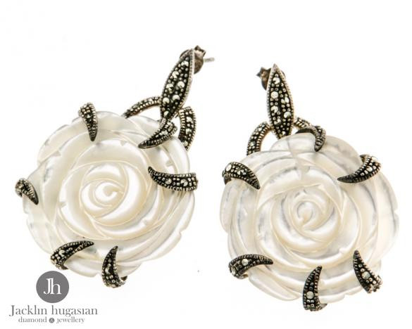 Обеци от "Jacklin hugasian" с марказити и седеф.