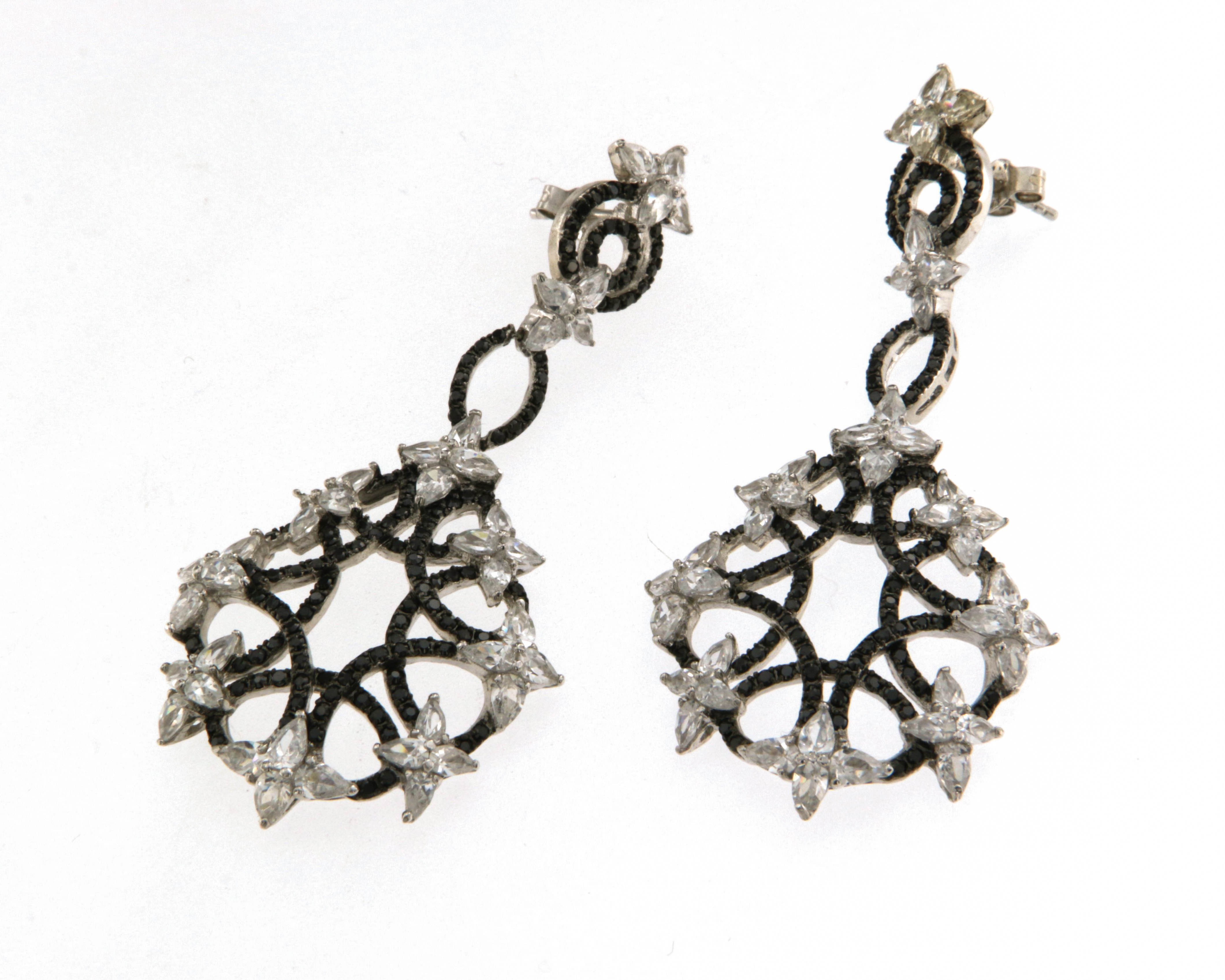 Обеци от " Jacklin hugasian " сребро с цирконийи черни оникси