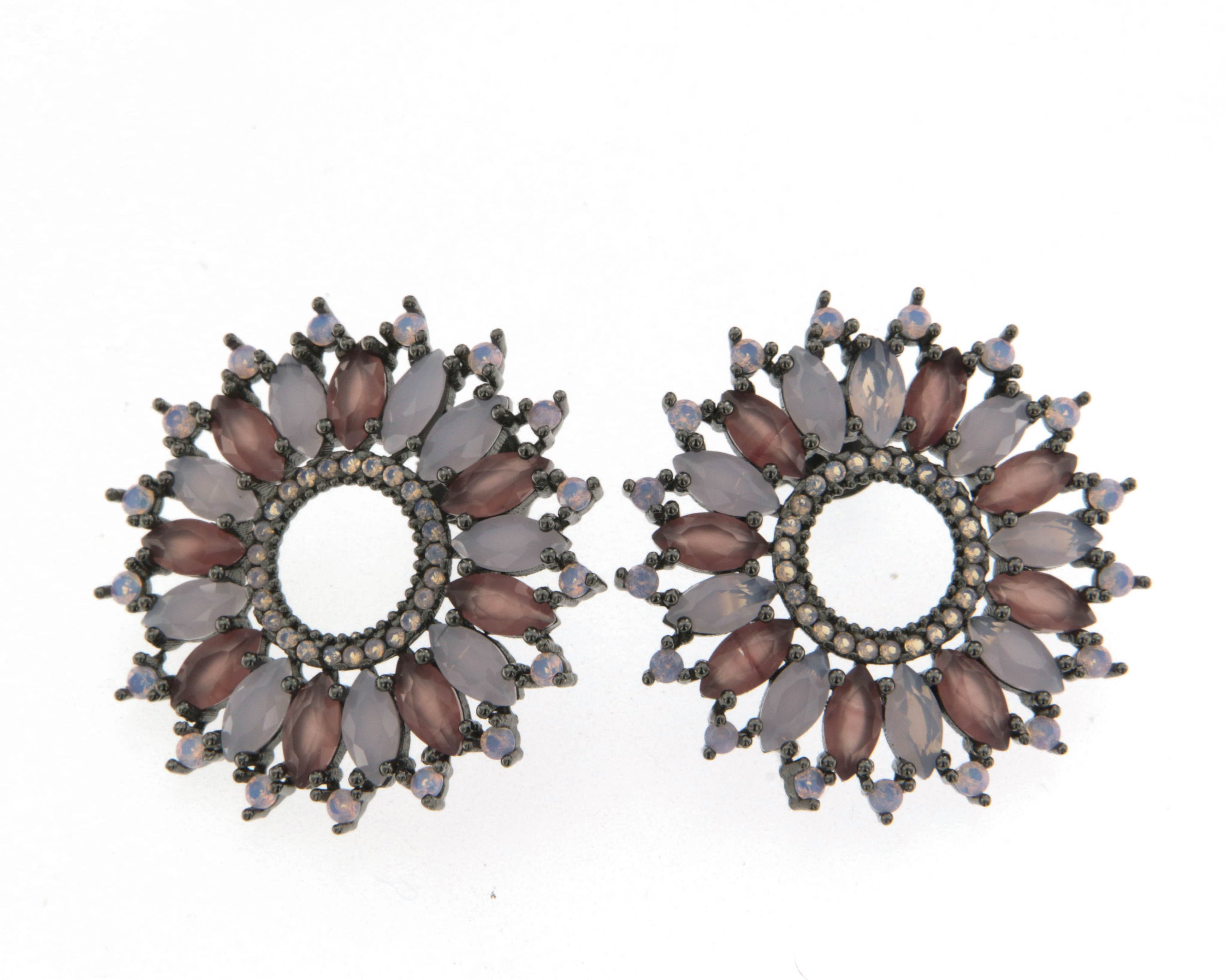 Обеци от "Jacklin hugasian" в оксидирано сребро с лунен камък, опал и розов кварц.