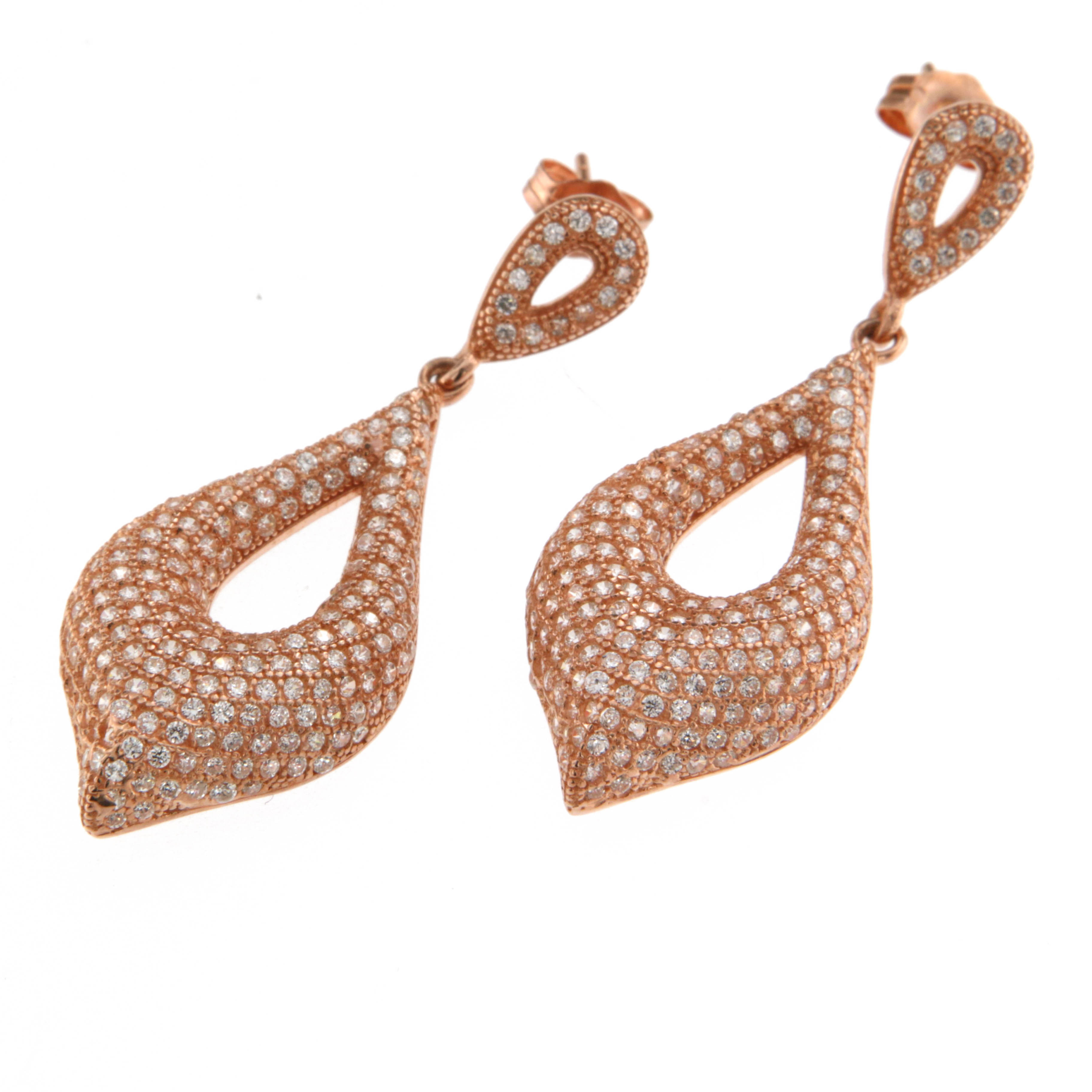 Обеци от " Jacklin hugasian " в розово сребро с цирконий.