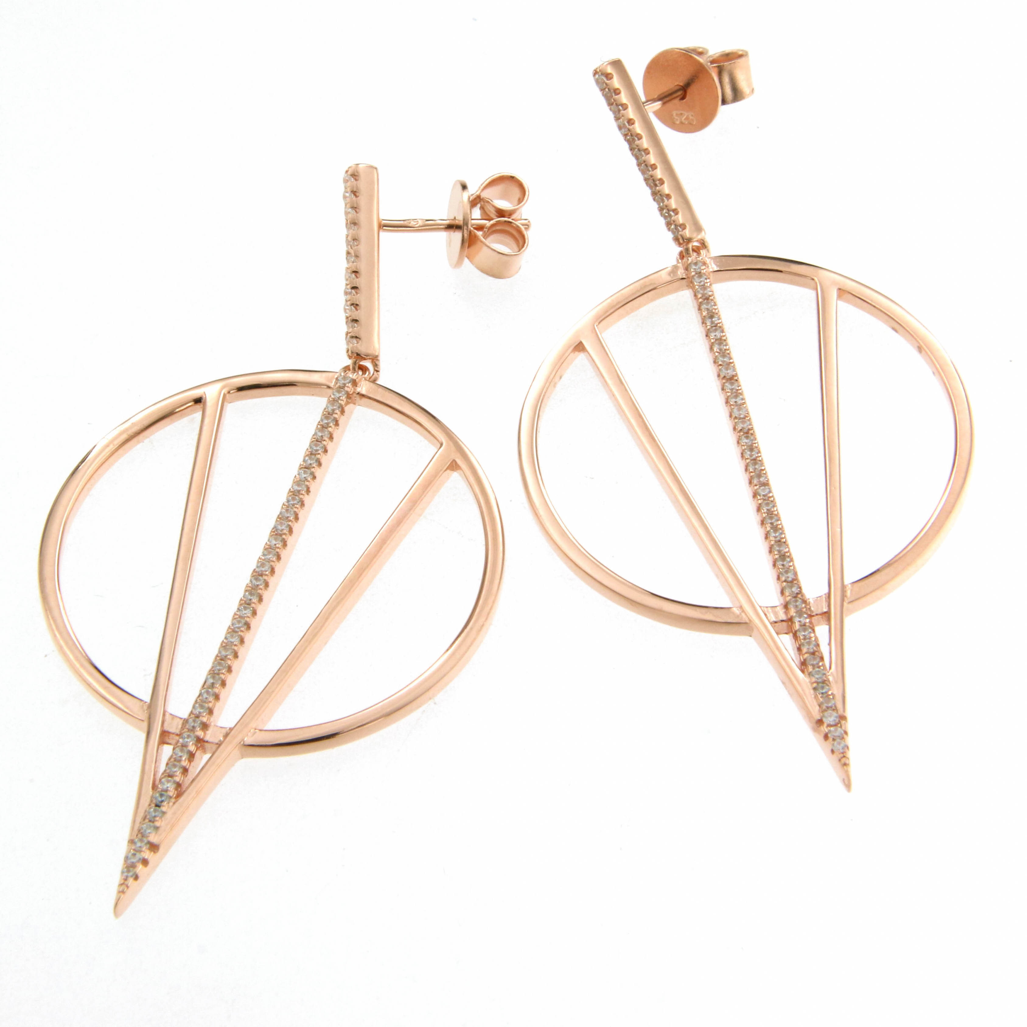 Обеци от “Jacklin hugasian” в розово сребро с цирконии.