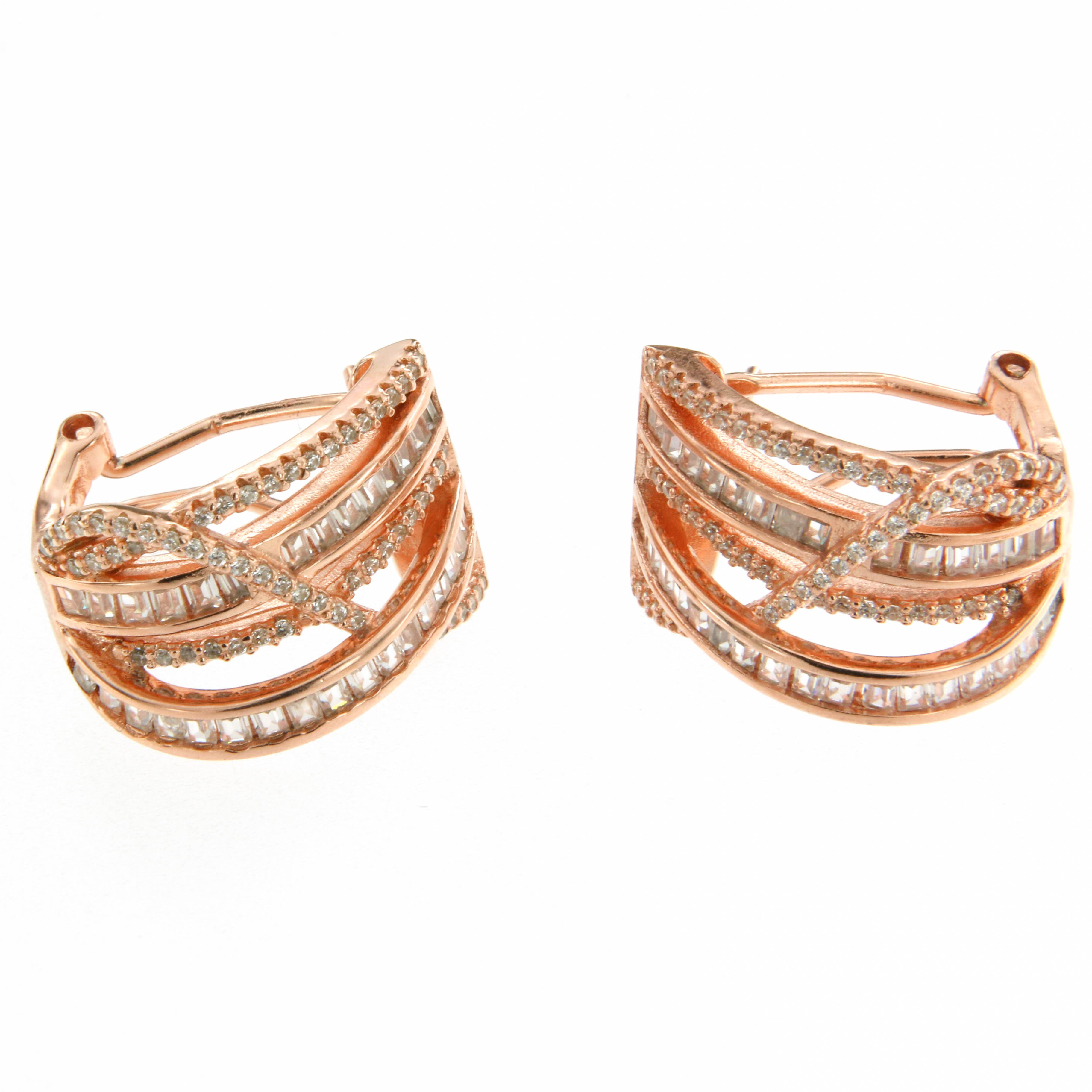 Обеци от "Jacklin hugasian" в розово сребро с цирконии.