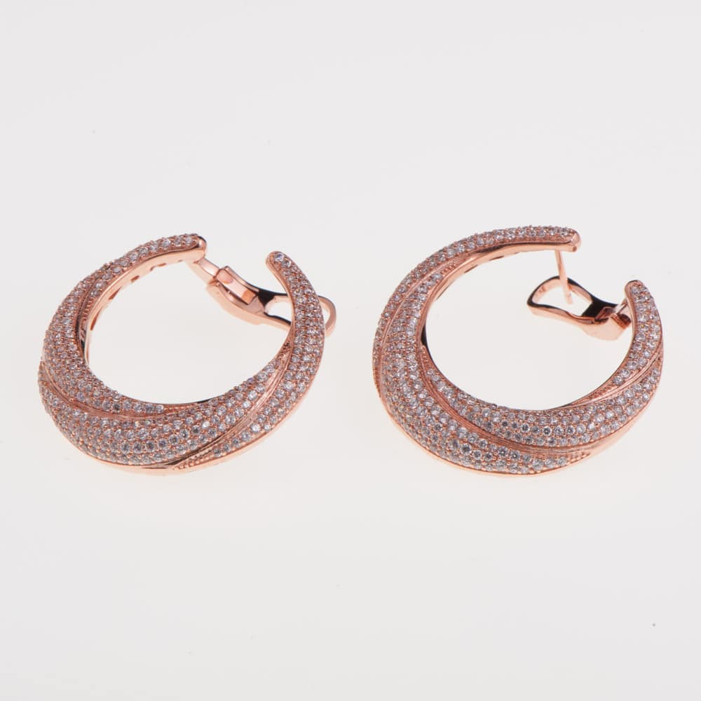 Обеци от "Jacklin hugasian" в розово сребро с цирконии.