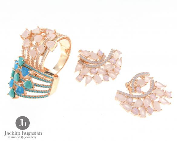 Обеци от "Jacklin hugasian" в розово сребро с опал и розов кварц.