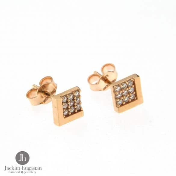 Обеци от " Jacklin hugasian " в розово злато гланц с цирконии.Широчина обеци 0.6 см.